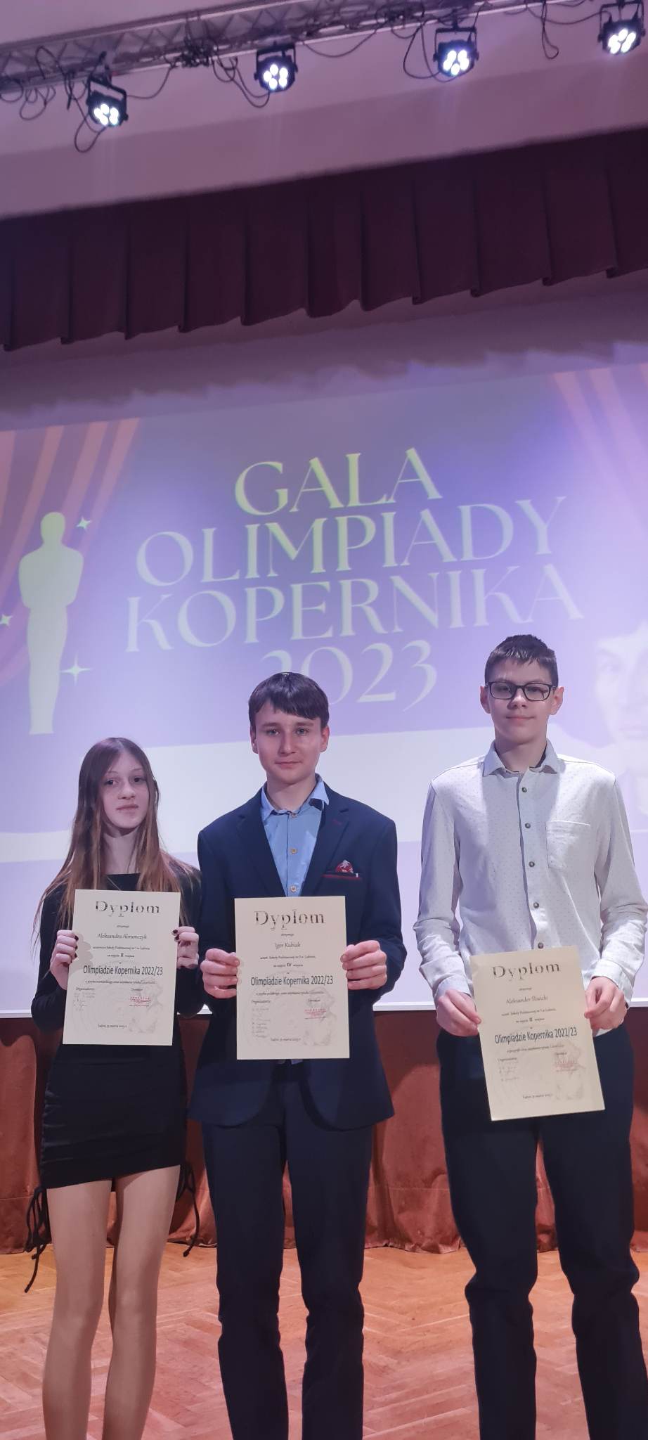 Dnia 31 marca odbyła się uroczysta Gala Olimpiady Kopernika. Podczas niej ogłoszono oficjalne wyniki we wszystkich kategoriach. Troje naszych uczniów zostało jej laureatami: