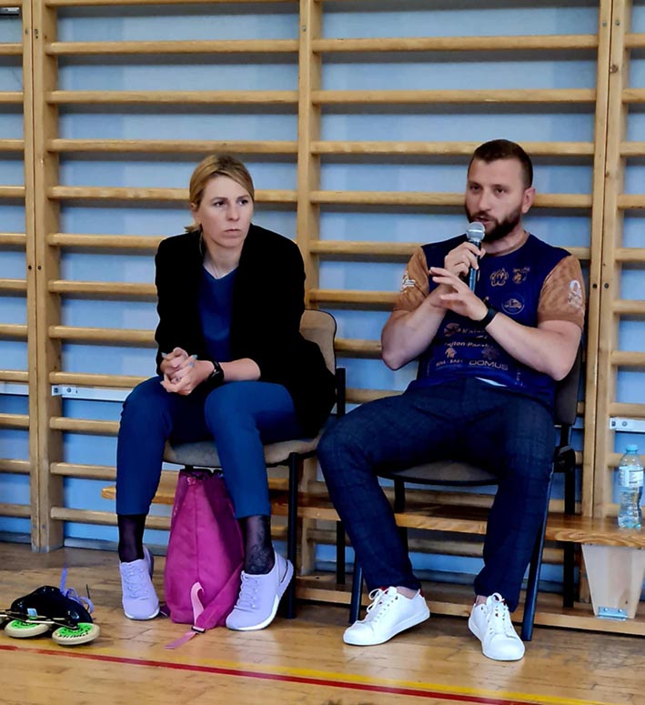 29 maja uczniowie naszej szkoły mieli niezwykłą okazję uczestniczyć w inspirującym spotkaniu z dwojgiem wyjątkowych sportowców, panią Natalią Czerwonką – medalistką Igrzysk Olimpijskich w łyżwiarstwie szybkim oraz panem Przemysławem Cedro – siatkarzem klubu Wataha i uczestnikiem Mistrzostw Polski. Podczas spotkania nasi goście opowiadali o tym, czym naprawdę jest postawa fair play, dlaczego warto kierować się uczciwością w rywalizacji sportowej oraz jak radzić sobie z emocjami, które towarzyszą zarówno zwycięstwom, jak i porażkom. To była nie tylko wartościowa lekcja sportu, ale także życia, pełna inspiracji, motywacji i praktycznych wskazówek, które z pewnością przydadzą się zarówno na zajęciach wychowania fizycznego, jak i poza salą gimnastyczną. Serdecznie dziękujemy naszym gościom za obecność, wspólny czas i podzielenie się swoimi doświadczeniami!