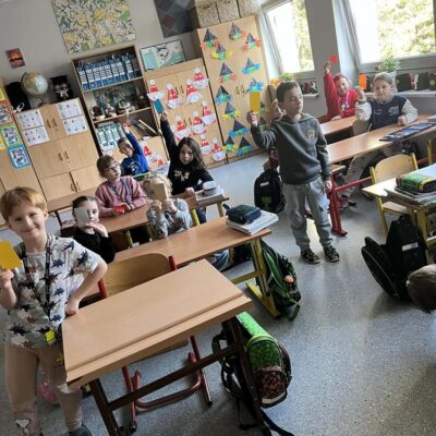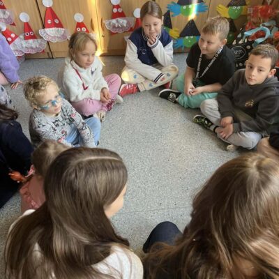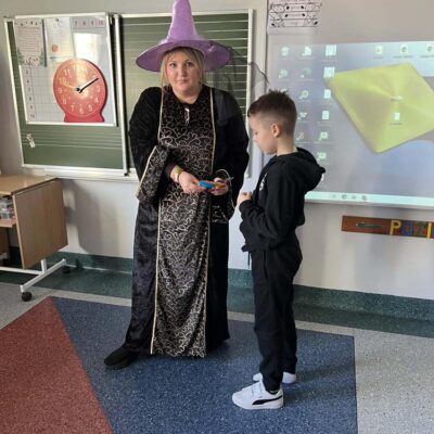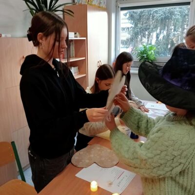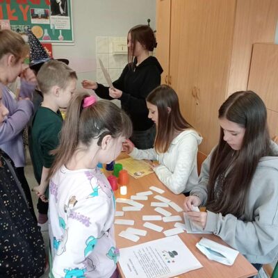 W miniony piątek szkoła zamieniła się w prawdziwą krainę czarów! Wszystko za sprawą uczniów klas 8c i 8d, którzy z ogromnym zaangażowaniem i kreatywnością zorganizowali Andrzejki dla edukacji wczesnoszkolnej. Ósmoklasiści przygotowali stanowiska z najpopularniejszymi andrzejkowymi wróżbami, które wzbudzały mnóstwo emocji i uśmiechu. Pomysłowość starszych kolegów i ich poczucie humoru sprawiły, że najmłodsi bawili się doskonale, a atmosferę wypełniały śmiech i pozytywna energia.