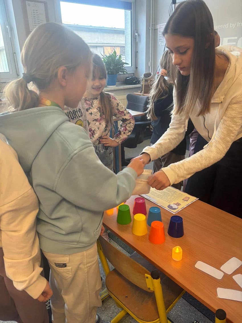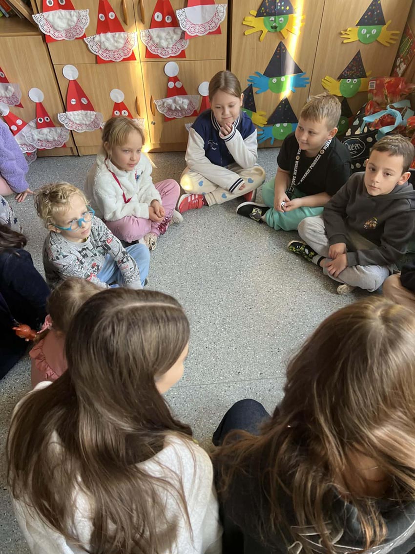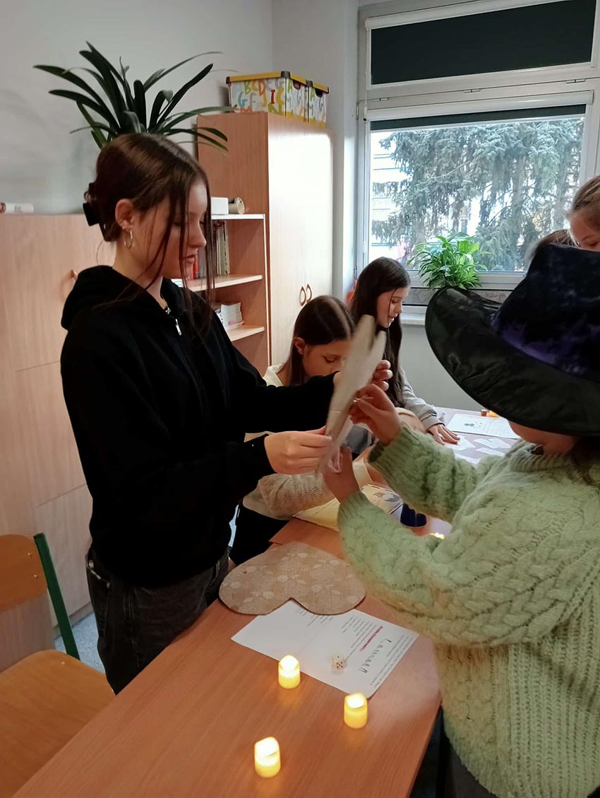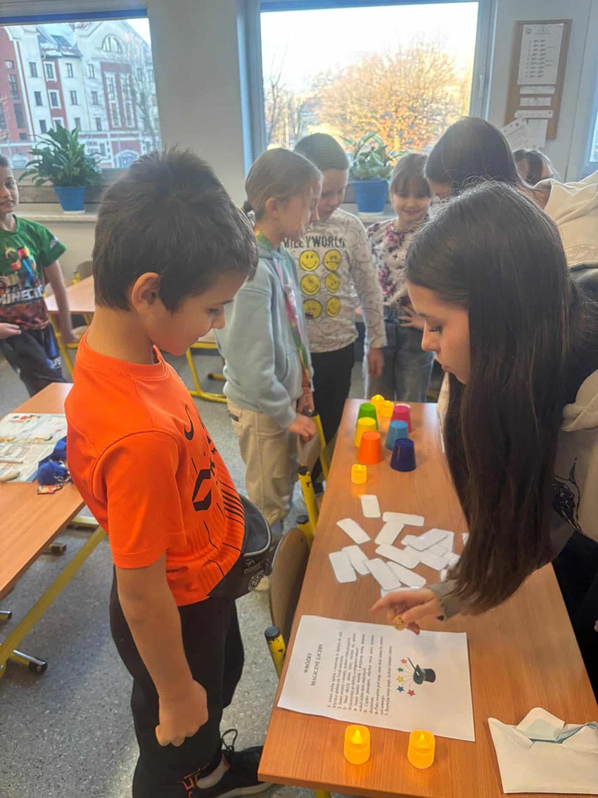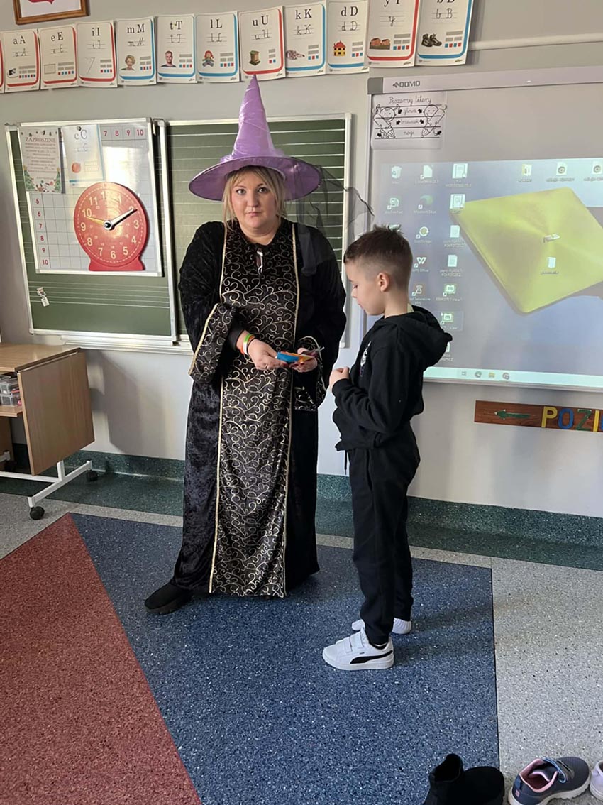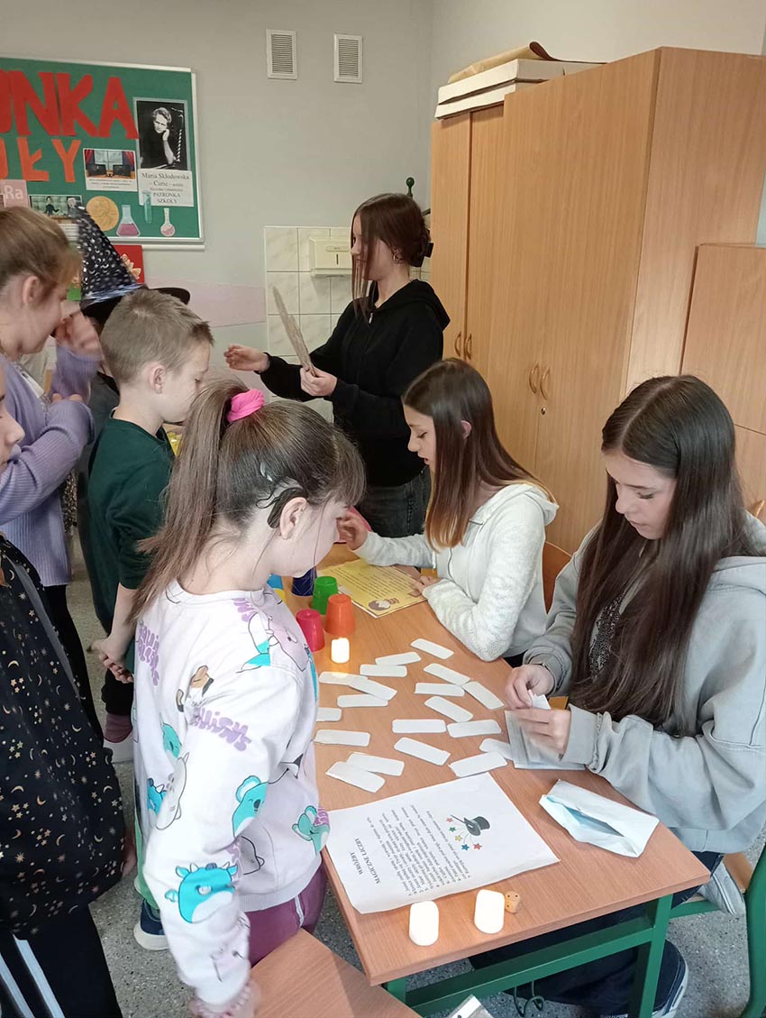 W miniony piątek szkoła zamieniła się w prawdziwą krainę czarów! Wszystko za sprawą uczniów klas 8c i 8d, którzy z ogromnym zaangażowaniem i kreatywnością zorganizowali Andrzejki dla edukacji wczesnoszkolnej. Ósmoklasiści przygotowali stanowiska z najpopularniejszymi andrzejkowymi wróżbami, które wzbudzały mnóstwo emocji i uśmiechu. Pomysłowość starszych kolegów i ich poczucie humoru sprawiły, że najmłodsi bawili się doskonale, a atmosferę wypełniały śmiech i pozytywna energia.