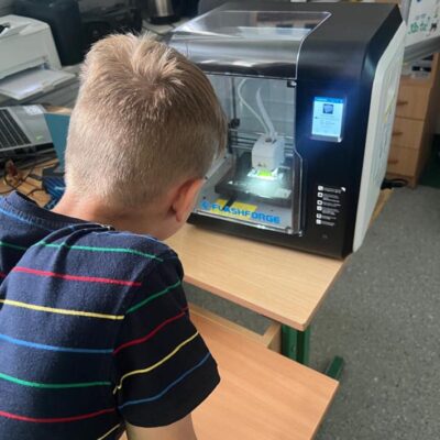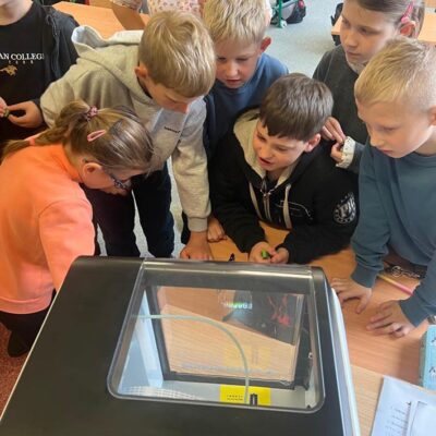Uczniowie klas 3a i 3c wzięli udział w inspirujących warsztatach poświęconych drukowi 3D. Podczas zajęć dzieci poznały budowę drukarki 3D oraz ciekawe możliwości jej zastosowania w codziennym życiu. Największym zainteresowaniem cieszył się pokaz druku 3D w praktyce. Uczniowie z zaciekawieniem obserwowali proces powstawania obiektów, a na zakończenie każdy z nich otrzymał własną kostkę 3D, którą ozdobił w stylu popularnej gry Minecraft. Zajęcia zostały zrealizowane dzięki wyposażeniu zakupionemu w ramach programu Laboratoria Przyszłości, który wspiera nowoczesną edukację i rozwój kompetencji przyszłości.