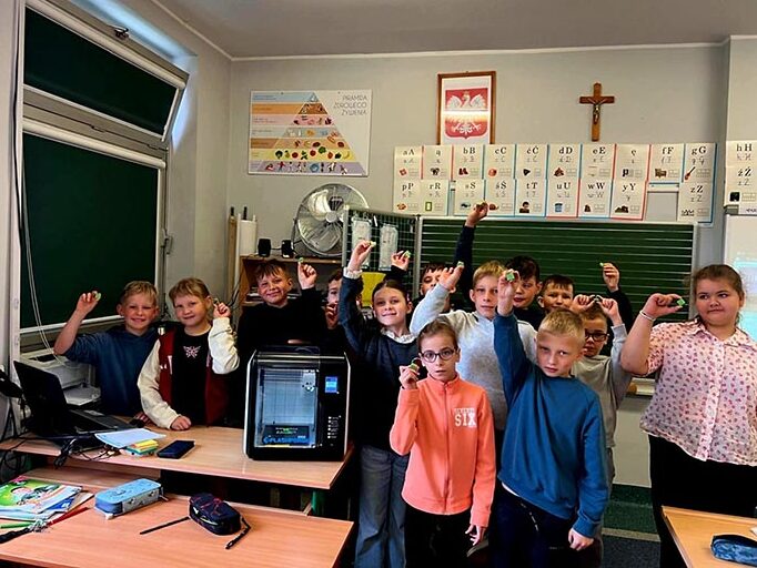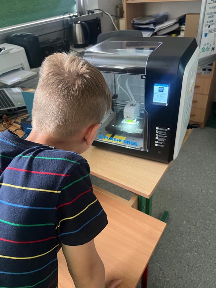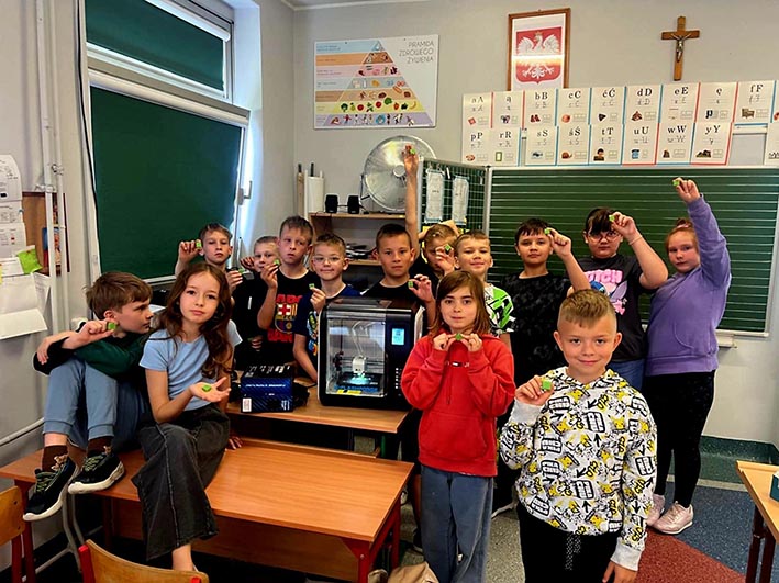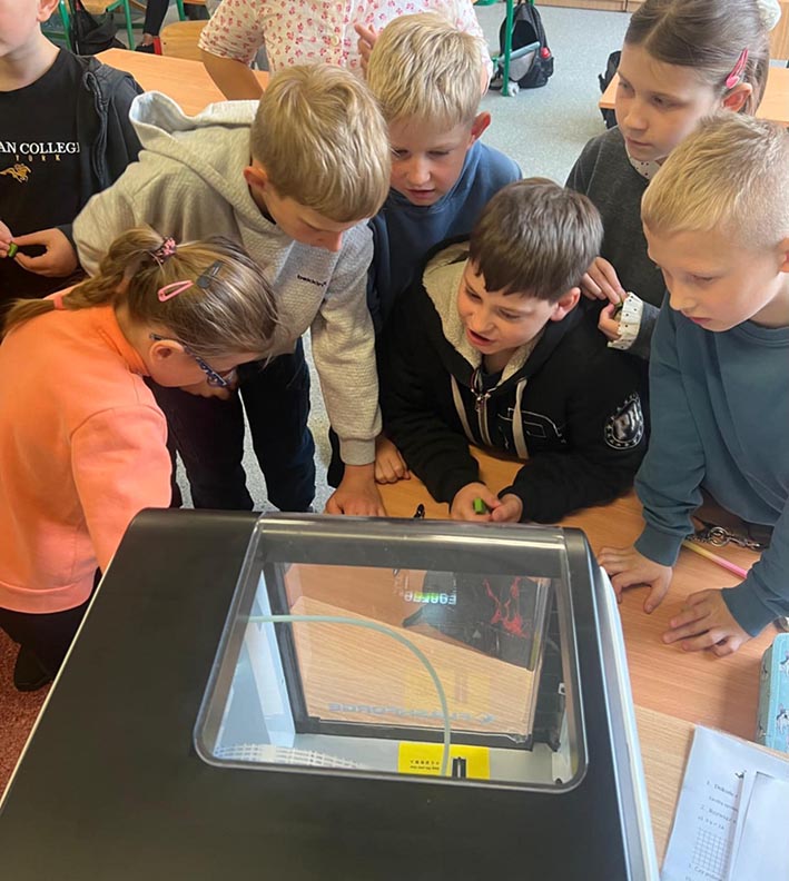 Uczniowie klas 3a i 3c wzięli udział w inspirujących warsztatach poświęconych drukowi 3D. Podczas zajęć dzieci poznały budowę drukarki 3D oraz ciekawe możliwości jej zastosowania w codziennym życiu. Największym zainteresowaniem cieszył się pokaz druku 3D w praktyce. Uczniowie z zaciekawieniem obserwowali proces powstawania obiektów, a na zakończenie każdy z nich otrzymał własną kostkę 3D, którą ozdobił w stylu popularnej gry Minecraft. Zajęcia zostały zrealizowane dzięki wyposażeniu zakupionemu w ramach programu Laboratoria Przyszłości, który wspiera nowoczesną edukację i rozwój kompetencji przyszłości.