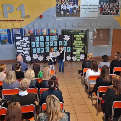 Dziś obchodziliśmy Dzień Edukacji Narodowej. Rozpoczął się on od zajęć, podczas których uczniowie spędzili czas ze swoimi wychowawcami. Następnie grono pedagogiczne miało przyjemność obejrzeć wzruszające przedstawienie przygotowane przez klasę 3c, dedykowane specjalnie nauczycielom. Zwieńczeniem tego wyjątkowego dnia była uroczysta ceremonia Ślubowania uczniów klas pierwszych, co dodało wydarzeniu jeszcze więcej podniosłości i emocji.