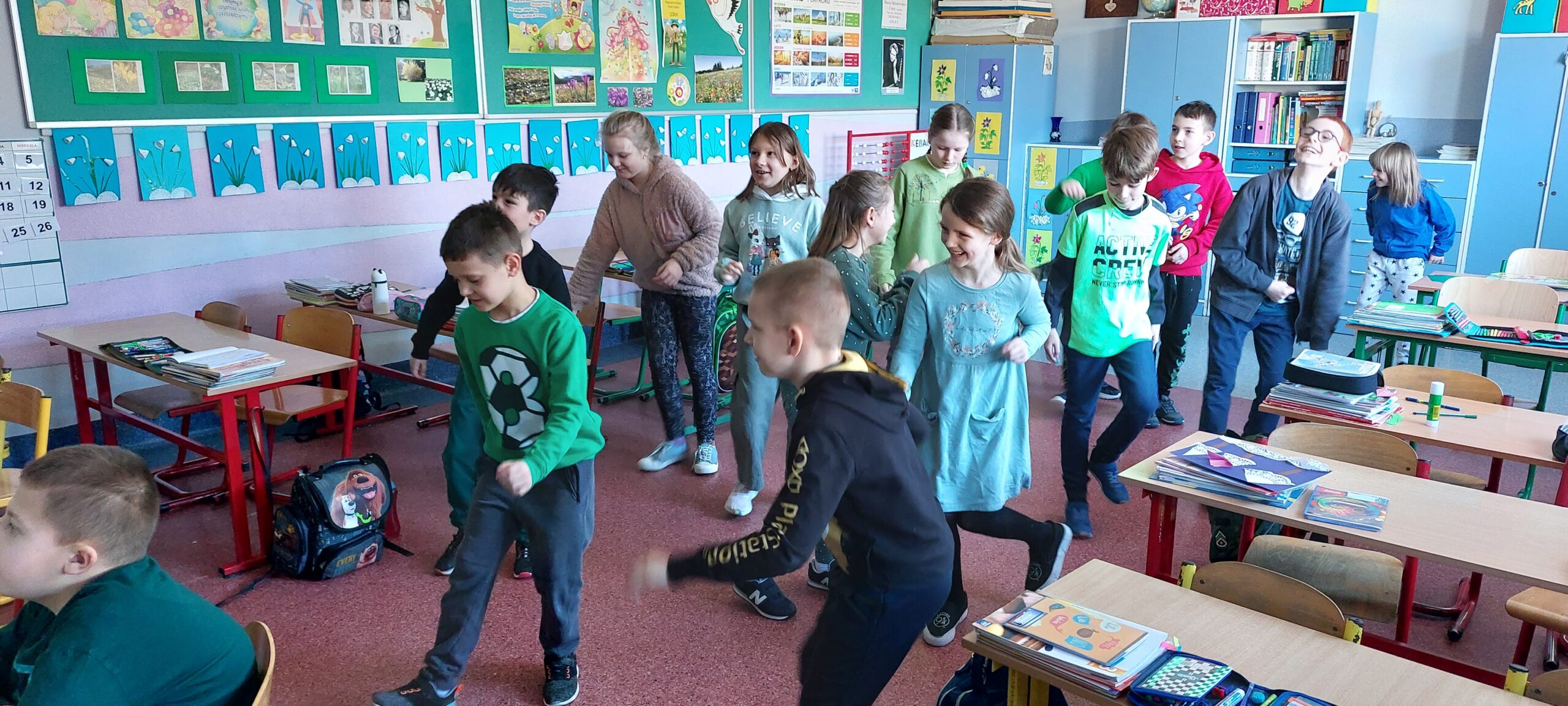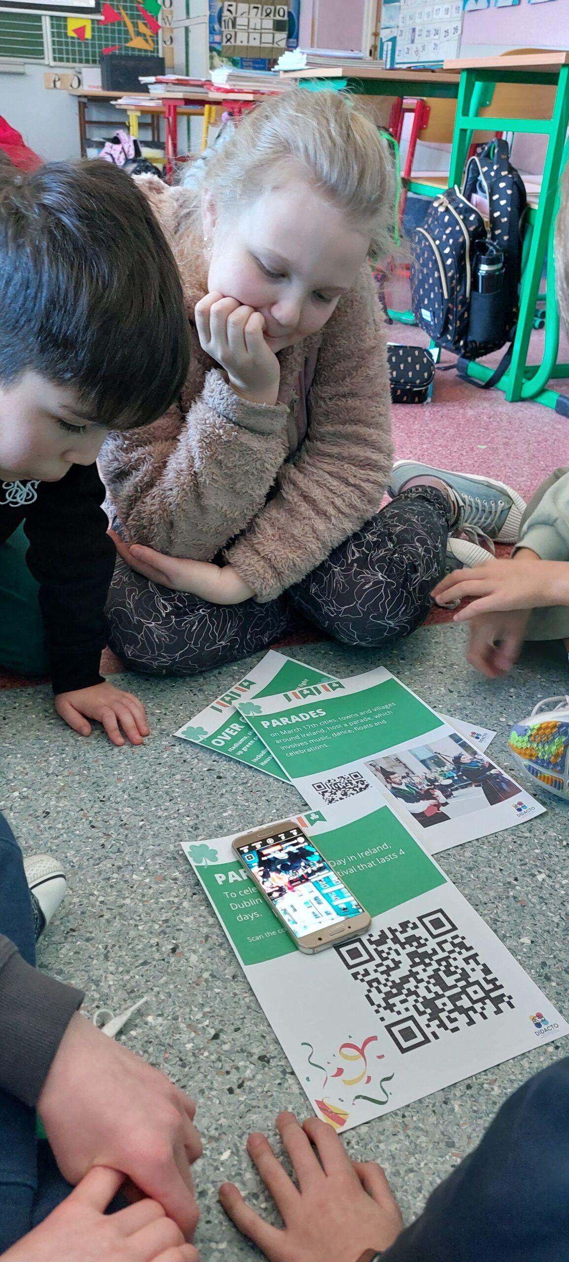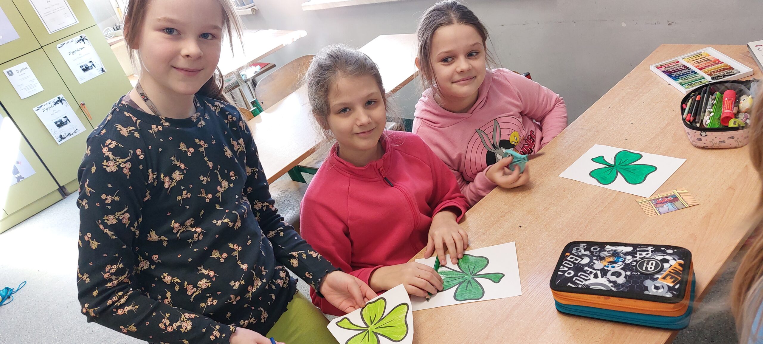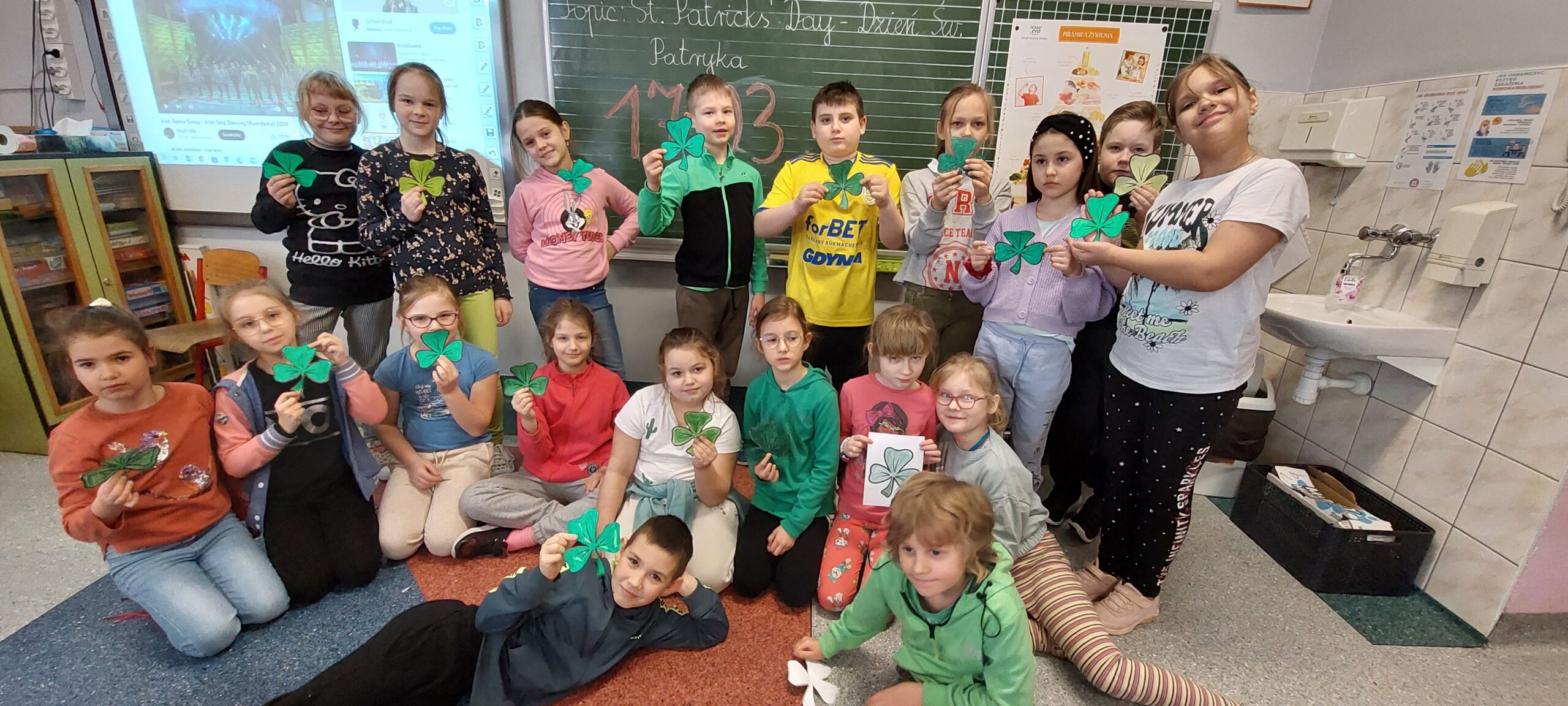 W klasach I-II została przeprowadzona ciekawa lekcja z języka angielskiego nawiązująca do kultury Irlandii. Dzień Świętego Patryka (St. Patrick’s Day) przypada 17 marca na cześć patrona Irlandii – św. Patryka. Za pomocą QR kodów uczniowie zapoznali się z ciekawostkami tego państwa. Kolorowali trójlistną koniczynę (shamrock) oraz spróbowali swoich sił na nauce tradycyjnego tańca irlandzkiego – Irish Jig. Wbrew pozorom nie należy on do najłatwiejszych, o czym przekonali się nasi uczniowie.