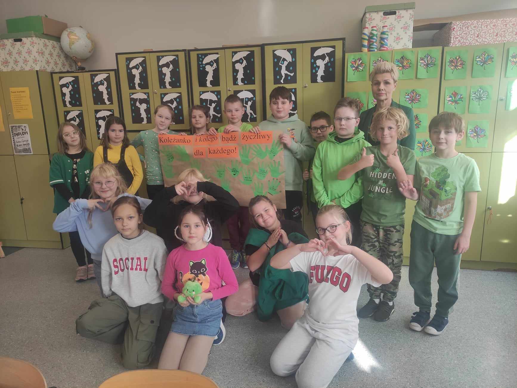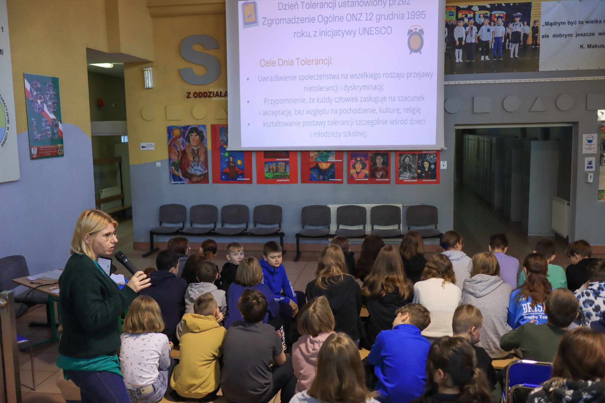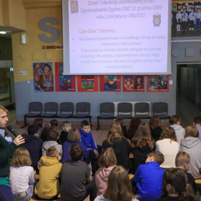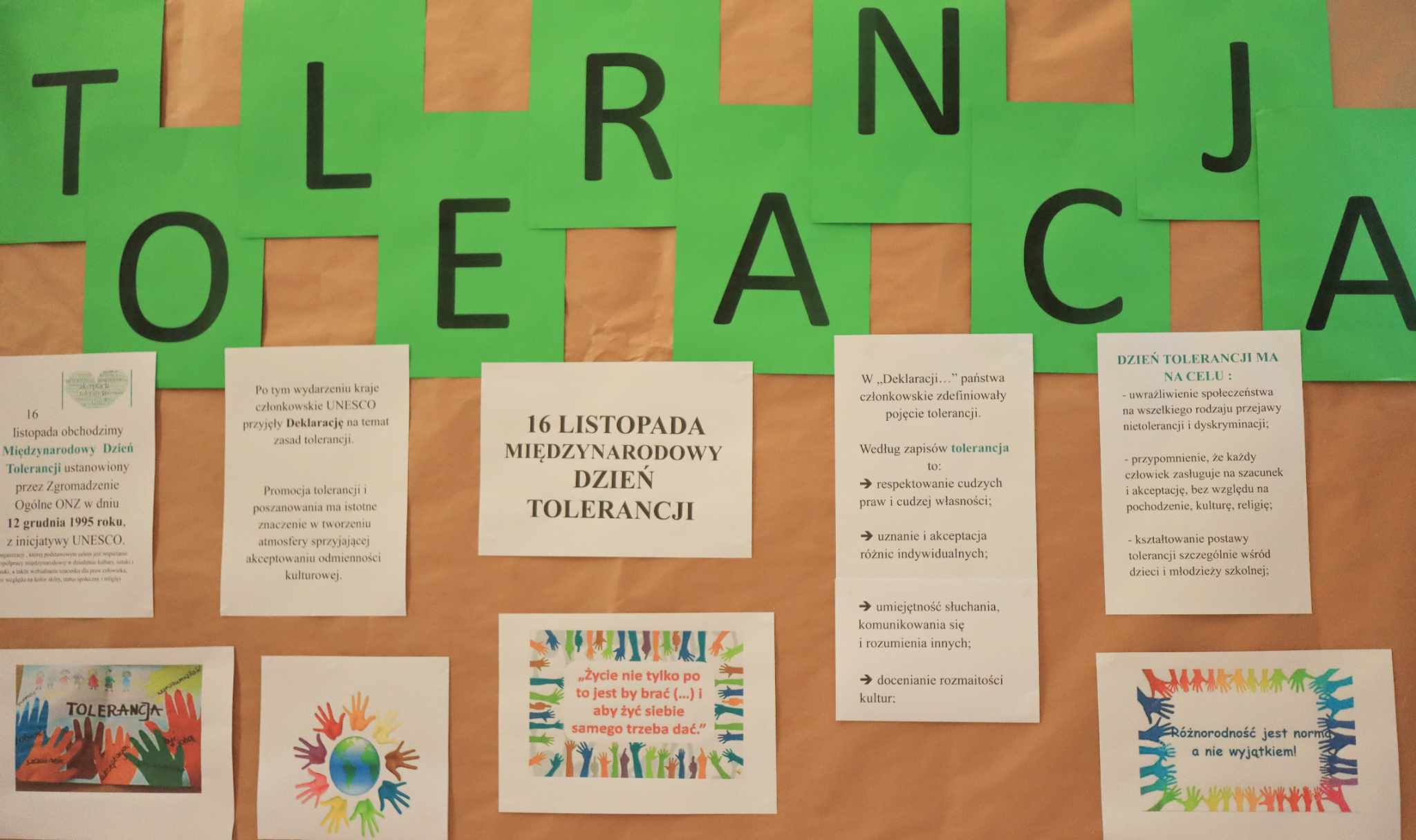 W tym roku szkolnym kontynuujemy akcję „Dzień dobry na dobry dzień”. W ramach akcji 16 listopada obchodziliśmy Dzień Tolerancji oraz Dzień Życzliwości i Pozdrowień. Celem inicjatyw było kształtowanie postaw życzliwości, szacunku i empatii. Uczniowie klas 1-3 uczestniczyli w zabawach przywołujących sytuacje społeczne, które wymagały stosowania różnych technik opartych na życzliwości, radości i akceptacji, mogli też wziąć udział w konkursie plastycznym oraz każda klasa wykonała swój plakat dotyczący życzliwości. Uczniowie klas 4-8 czerpali wiedzę na temat tolerancji oglądając prezentację, chętnie podjęli się dyskusji na temat dyskryminacji i mogli przekazać swoją postawę w mini quizie pod nazwą „Człowiek tolerancyjny”. Dzień ten stał się okazją do refleksji nad własną postawą w odniesieniu do innych osób.