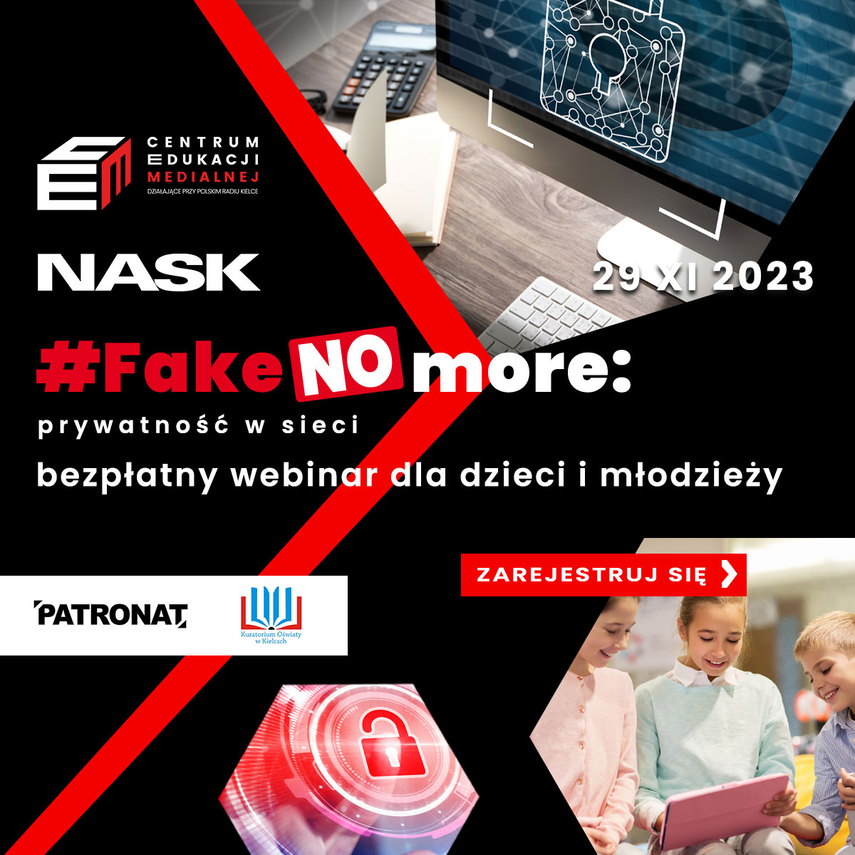 Dostęp do internetu jest nieodłączną częścią naszego życia. Wraz z nim pojawiają się również wyzwania związane z bezpieczeństwem danych i prywatnością w sieci. W związku z tym, Centrum Edukacji Medialnej oraz Państwowy Instytut Badawczy NASK zapraszają do udziału w ogólnopolskiej kampanii #FakeNoMore.