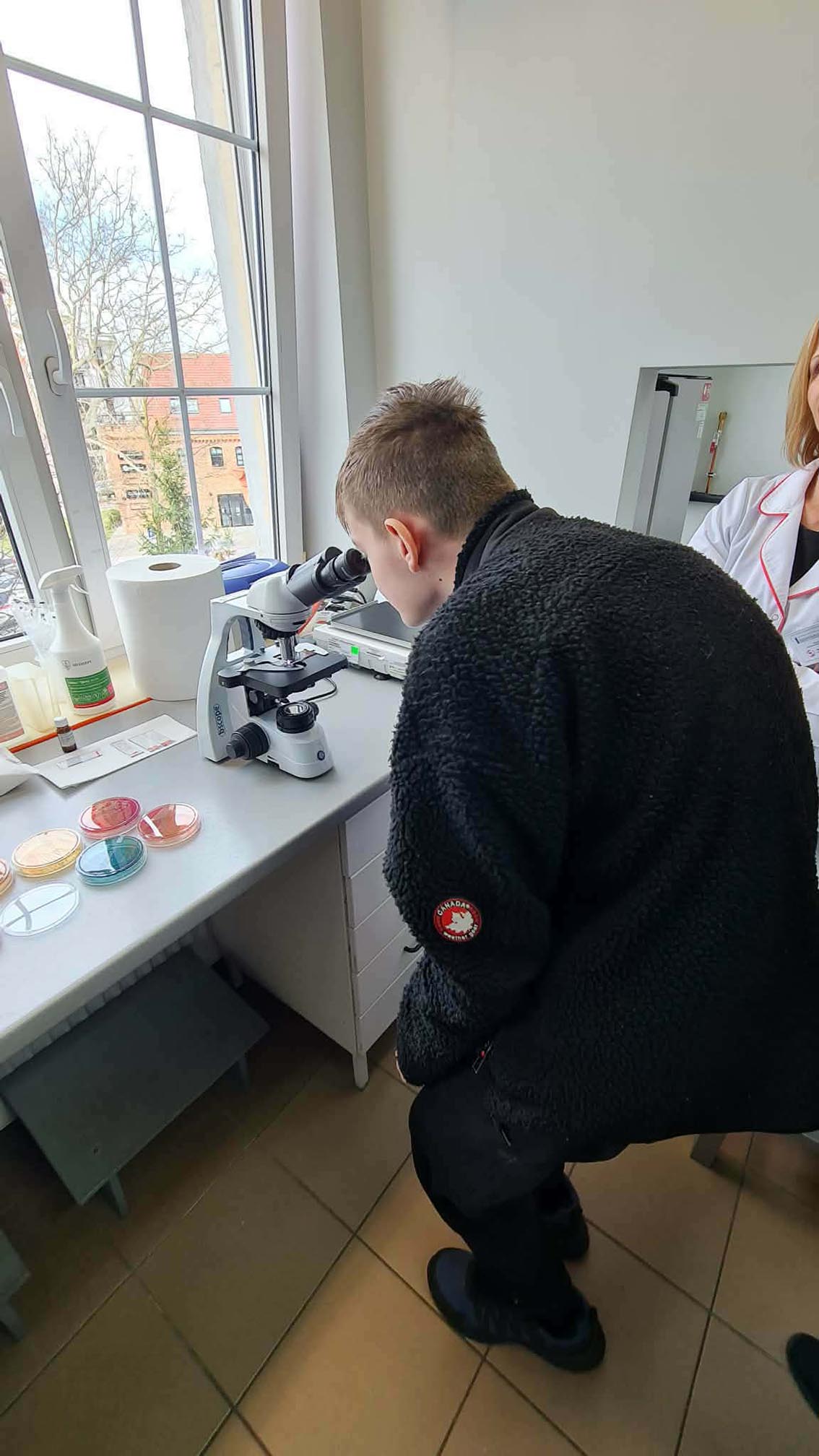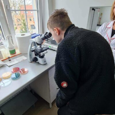 10 kwietnia uczniowie klasy 7a odwiedzili Powiatową Stację Sanitarno-Epidemiologiczną w Lubinie. W programie znalazło się zwiedzanie laboratorium, praca z mikroskopem oraz praktyczne ćwiczenia dotyczące higieny mycia rak, dzięki specjalnemu urządzeniu każdy mógł sprawdzić, jak dokładnie umył dłonie.