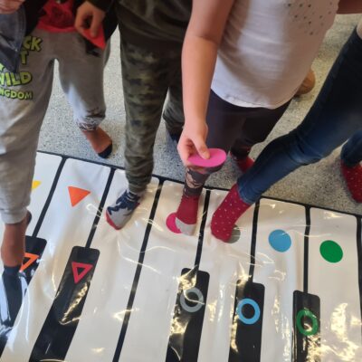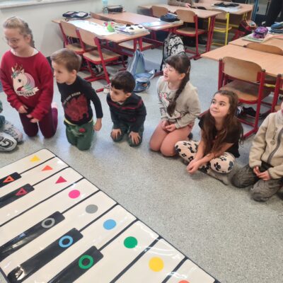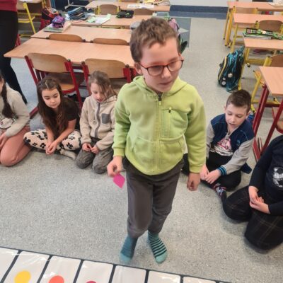 23 stycznia uczniowie klas pierwszych uczestniczyli w zajęciach „Kolorowe dźwięki”. Dzieci mogły rozwijać koordynację wzrokowo – ruchową oraz doskonalić umiejętność współpracy. Muzyka w połączeniu z ruchem wyzwoliła w dzieciach ekspresję, a przede wszystkim była źródłem radości.