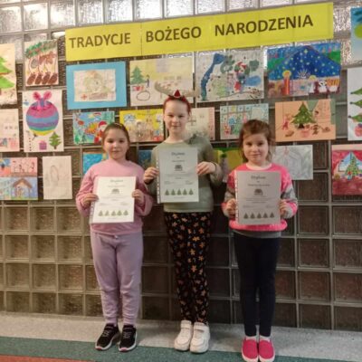 Za nami rozstrzygnięcie konkursu plastycznego „Tradycje Bożego Narodzenia” dla uczniów z klas I-III. Komisja konkursowa stanęła przed trudnym wyborem, gdyż wszystkie 34 zgłoszone prace były naprawdę wyjątkowe. Stanowiły one ozdobę pierwszego piętra budynku naszej szkoły i wprowadzały nas w świąteczny nastrój.