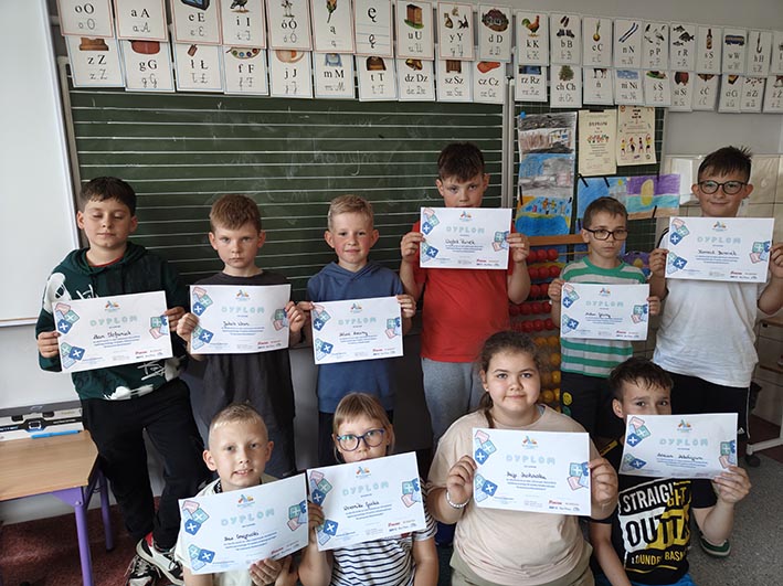 W roku szkolnym 2024/2025 uczniowie klasy 3b oraz dzieci z klas trzecich uczęszczające do świetlicy szkolnej uczestniczyli w Ogólnopolskim Programie Edukacyjnym „Kreatywna matematyka”. Celem programu było pokazanie, że matematyka może być nie tylko zrozumiała, ale również fascynująca i przyjemna. Poprzez wielozmysłowe poznawanie uczniowie mieli okazję odkrywać świat liczb, działań matematycznych i figur geometrycznych w sposób twórczy i angażujący. Zajęcia udowodniły, że matematyka otacza nas na co dzień – wystarczy się rozejrzeć! Dzięki aktywnemu udziałowi i wzorowemu wykonaniu zadań nasza szkoła oraz każdy z uczestników otrzymał certyfikat potwierdzający udział w programie. Gratulujemy wszystkim uczniom zaangażowania i otwartości na matematyczne wyzwania!