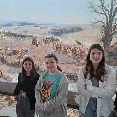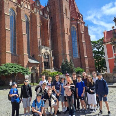 Wycieczka klasy 6a i 6c do słonecznego Wrocławia rozpoczęła się wizytą w Panoramie Racławickiej, podczas której uczniowie poznali historię powstania oraz wydarzenia, do których nawiązuje to niezwykłe dzieło sztuki. Następnie spacerkiem uczniowie przeszli przez Ostrów Tumski i dotarli do Ogrodu Botanicznego. 8-hektarowy ogród pełen roślin zachwycił kwitnącymi piwoniami, rododendronami i kosaćcami. W Pawilonie ,,Panorama Natury” szóstoklasiści mogli przemieszczać się przez wszystkie ery, co pozwoliło im zrozumieć jak rozwijało się życie na Ziemi.