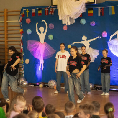 30 kwietnia społeczność naszej szkoły w wyjątkowy sposób uczciła Międzynarodowy Dzień Tańca – święto, które promuje taniec jako formę wyrazu, radości i integracji. Obchody rozpoczęły się od warsztatów tanecznych prowadzonych podczas zajęć z wychowawcami, w czasie których uczniowie poznawali różne style taneczne oraz ich historię i znaczenie w różnych kulturach. Następnie cała szkoła zebrała się na sali gimnastycznej, by wspólnie obejrzeć występy zaproszonych gości. Wśród artystów, którzy uświetnili ten dzień swoją obecnością, znaleźli się: Zespół Folklorystyczny „Lubin” z Krzeczyna Wielkiego, który zaprezentował piękno i bogactwo polskiego tańca ludowego, wzbudzając zachwyt barwnymi strojami i żywiołową muzyką. Tancerze ze Studia Tańca Patryka Mierzwy, specjalizujący się w tańcach standardowych i latynoamerykańskich oczarowali publiczność elegancją, gracją i precyzją ruchu. Artyści ze Studia Tańca „Fuego” porwali widzów nowoczesnymi choreografiami w stylach dancehall, hip-hop, jazz – ich energia i ekspresja były naprawdę imponujące! To wyjątkowe wydarzenie pokazało, jak różnorodny i inspirujący może być taniec. Serdecznie dziękujemy wszystkim artystom za wspaniałe występy, a naszym uczniom za aktywność i otwartość na nowe doświadczenia. Międzynarodowy Dzień Tańca był nie tylko okazją do zabawy, ale również do refleksji nad tym, jak taniec może łączyć ludzi, przekraczać bariery i wyrażać emocje tam, gdzie kończą się słowa.