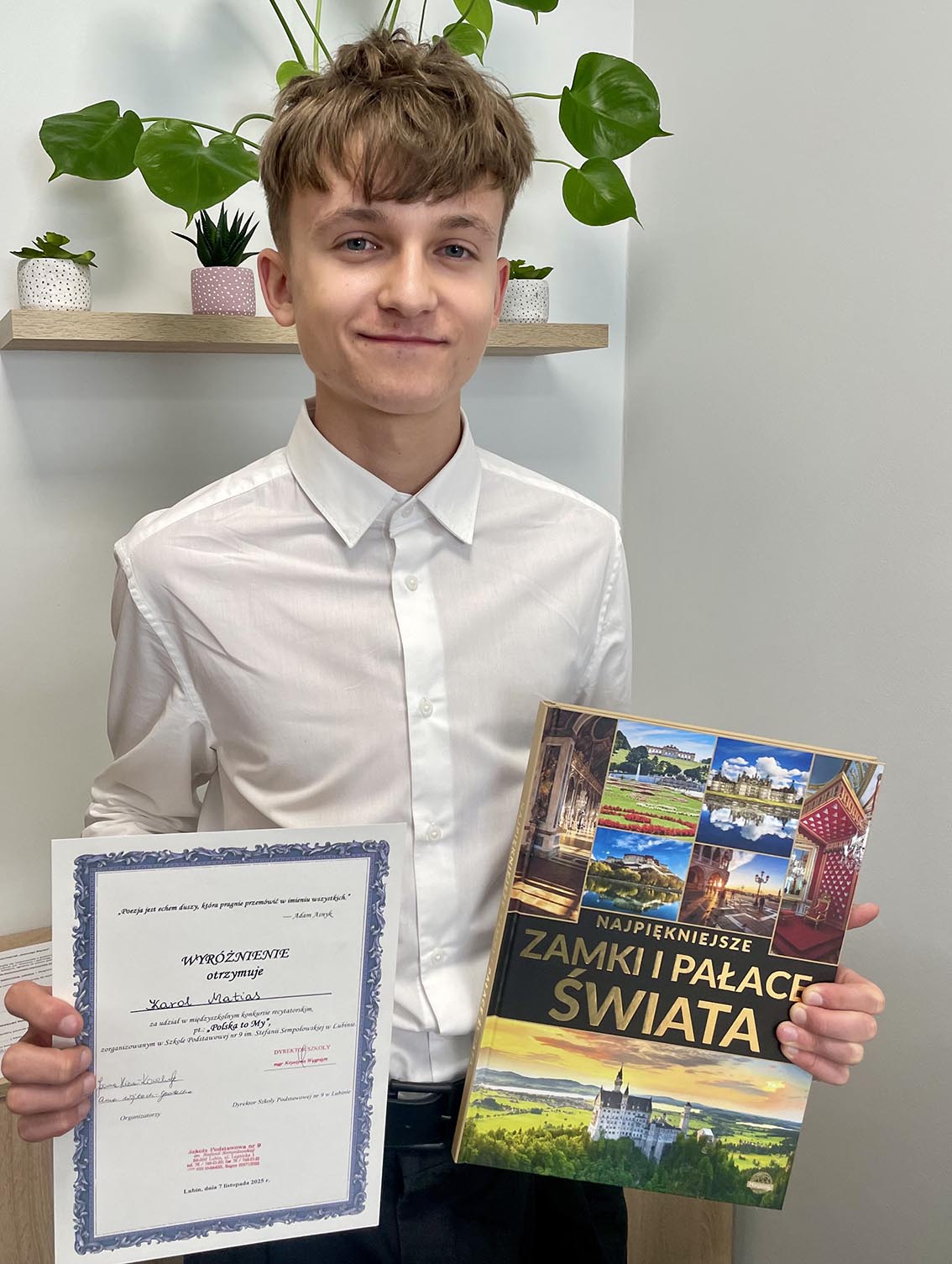 7 listopada w Szkole Podstawowej nr 9 w Lubinie odbył się Międzyszkolny Konkurs Recytatorski Poezji Patriotycznej pod hasłem „Polska to My”. Przedstawicielami naszej szkoły byli: Zofia Kuderewicz z klasy6b, Karol Matias z 8a oraz Zuzanna Szydłowska z 6b. Uczestnicy zaprezentowali wysoki poziom umiejętności recytatorskich, a Karol Matias za recytację „Reduty Ordona” Adama Mickiewicza otrzymał wyróżnienie. Pozostali uczestnicy zostali uhonorowani pamiątkowymi dyplomami. Wszystkim naszym recytatorom gratulujemy i życzymy kolejnych wspaniałych występów!