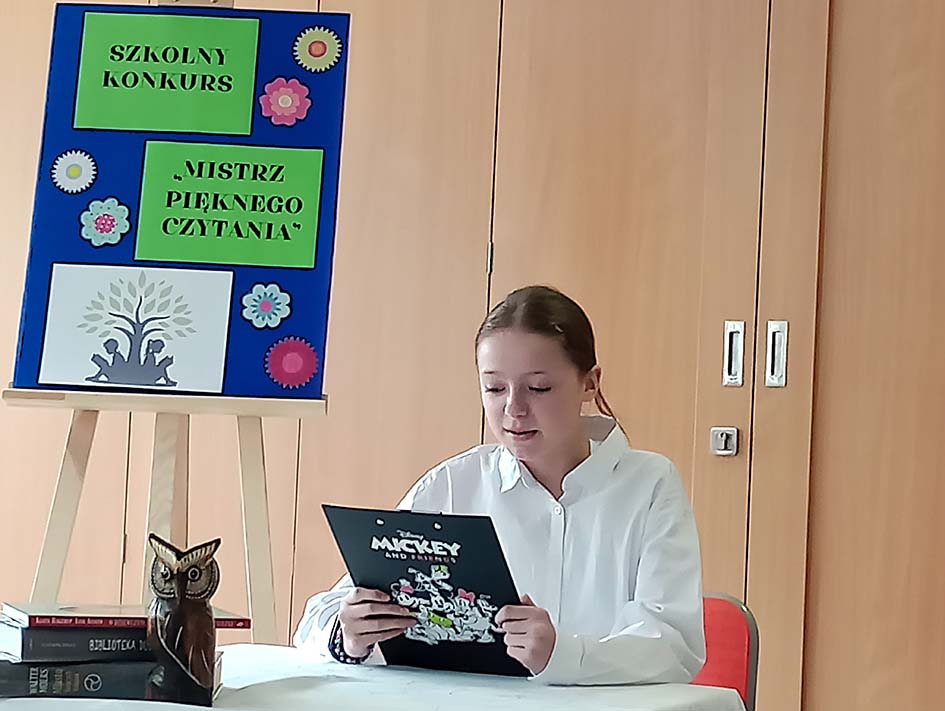 27 marca uczniowie klas 4 – 8 wzięli udział w konkursie „Mistrz Pięknego Czytania”, zorganizowanym przez szkolną bibliotekę. Celem wydarzenia było podniesienie kompetencji czytelniczych uczniów, popularyzacja literatury oraz rozwijanie twórczych talentów. O tytuł Mistrza Pięknego Czytania konkurowało 20 uczniów. Po burzliwej naradzie jury, które oceniało dykcję, intonację, głośność oraz interpretację tekstu, laureatami konkursu zostali: