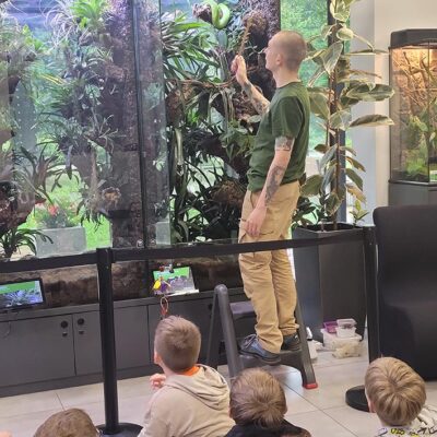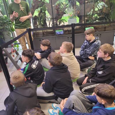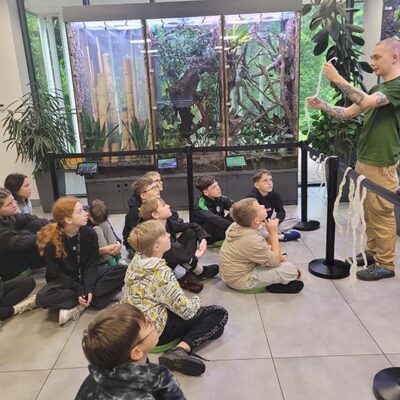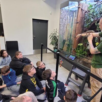 30 maja uczniowie klasy 5c odwiedzili ZOO w Lubinie, gdzie uczestniczyli w wyjątkowym pokazie okazów terrarystycznych. Podczas zajęć mieli okazję z bliska przyjrzeć się różnym gatunkom owadów, płazów i gadów. Dzieci poznały budowę tych zwierząt, ich zwyczaje, a także dowiedziały się, w jaki sposób postrzegają świat węże i kameleony. Była to niezwykle interesująca i inspirująca lekcja biologii, która na długo pozostanie w pamięci uczniów.