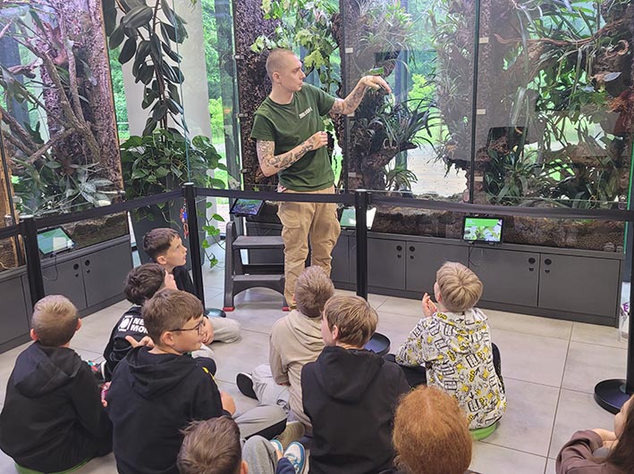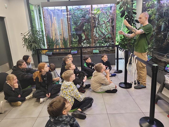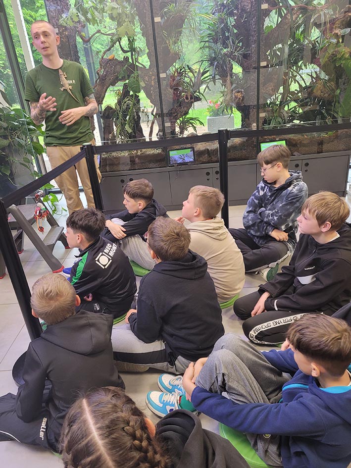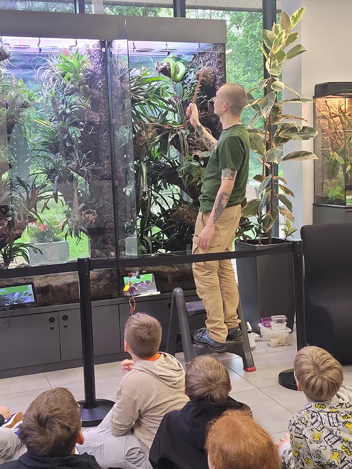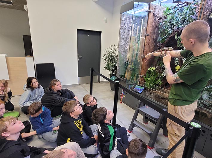 30 maja uczniowie klasy 5c odwiedzili ZOO w Lubinie, gdzie uczestniczyli w wyjątkowym pokazie okazów terrarystycznych. Podczas zajęć mieli okazję z bliska przyjrzeć się różnym gatunkom owadów, płazów i gadów. Dzieci poznały budowę tych zwierząt, ich zwyczaje, a także dowiedziały się, w jaki sposób postrzegają świat węże i kameleony. Była to niezwykle interesująca i inspirująca lekcja biologii, która na długo pozostanie w pamięci uczniów.