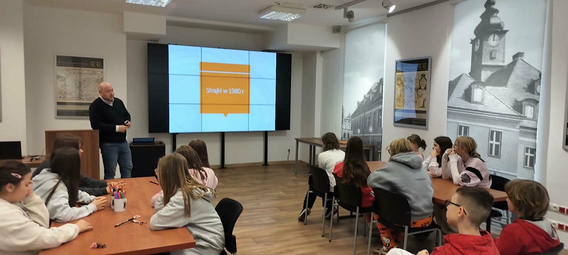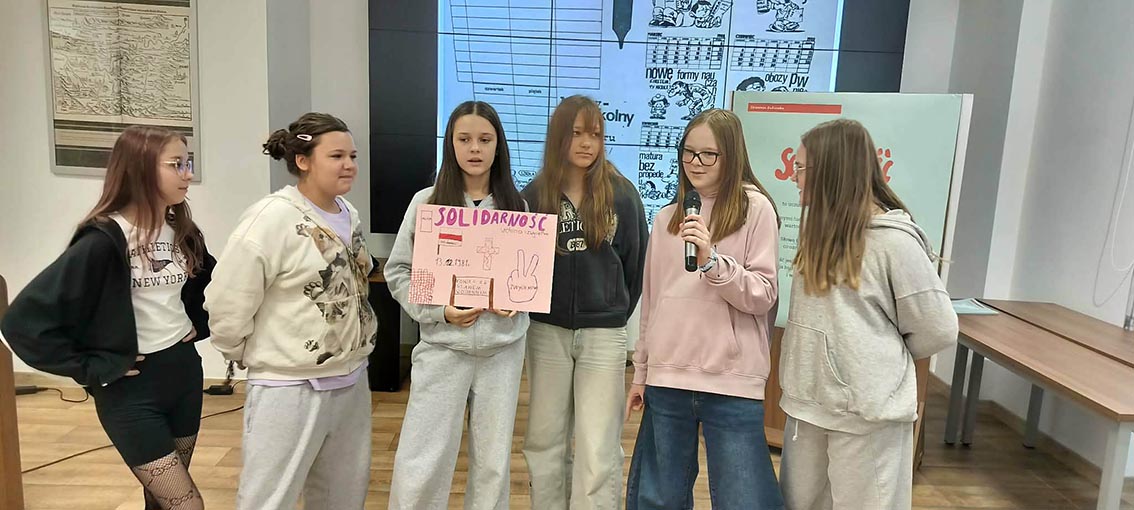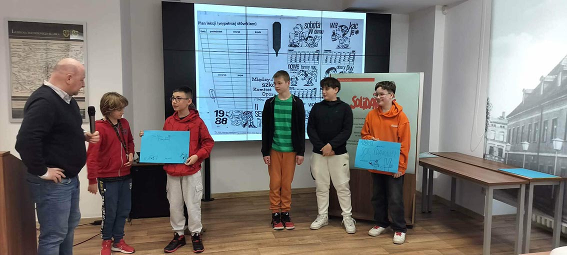 Uczniowie klasy 5a odwiedzili Muzeum Historyczne w Lubinie, gdzie uczestniczyli w wyjątkowej lekcji poświęconej wydarzeniom z 31 sierpnia 1982 roku, jednej z najważniejszych i najbardziej poruszających kart w historii naszego miasta. Podczas spotkania uczniowie poznali okoliczności pokojowej demonstracji, która odbyła się w Lubinie w czasie stanu wojennego i była częścią protestów organizowanych przez Solidarność. Dzięki opowieściom, materiałom archiwalnym i wspólnej pracy mogli lepiej zrozumieć wydarzenia, o których często słyszeli wcześniej w rodzinnych opowieściach. Dziękujemy Muzeum Historyczne w Lubinie za inspirujące spotkanie i niezwykłą lekcję historii.