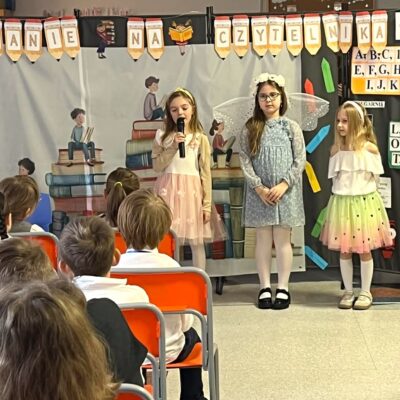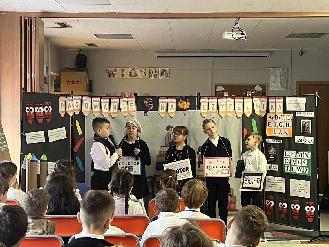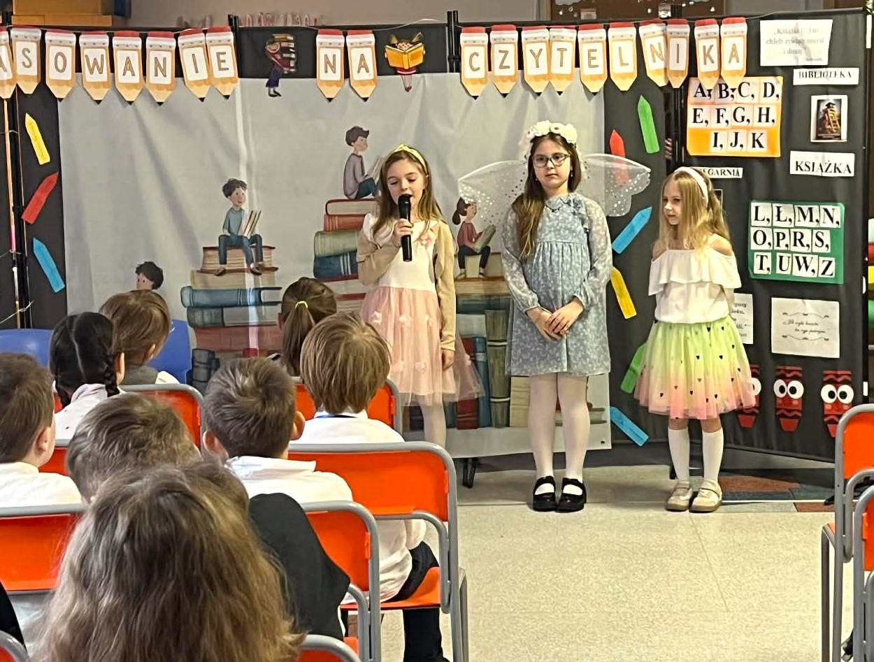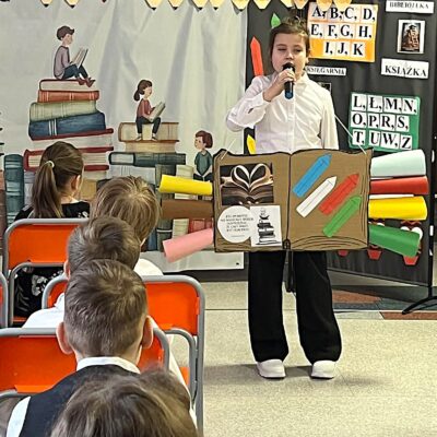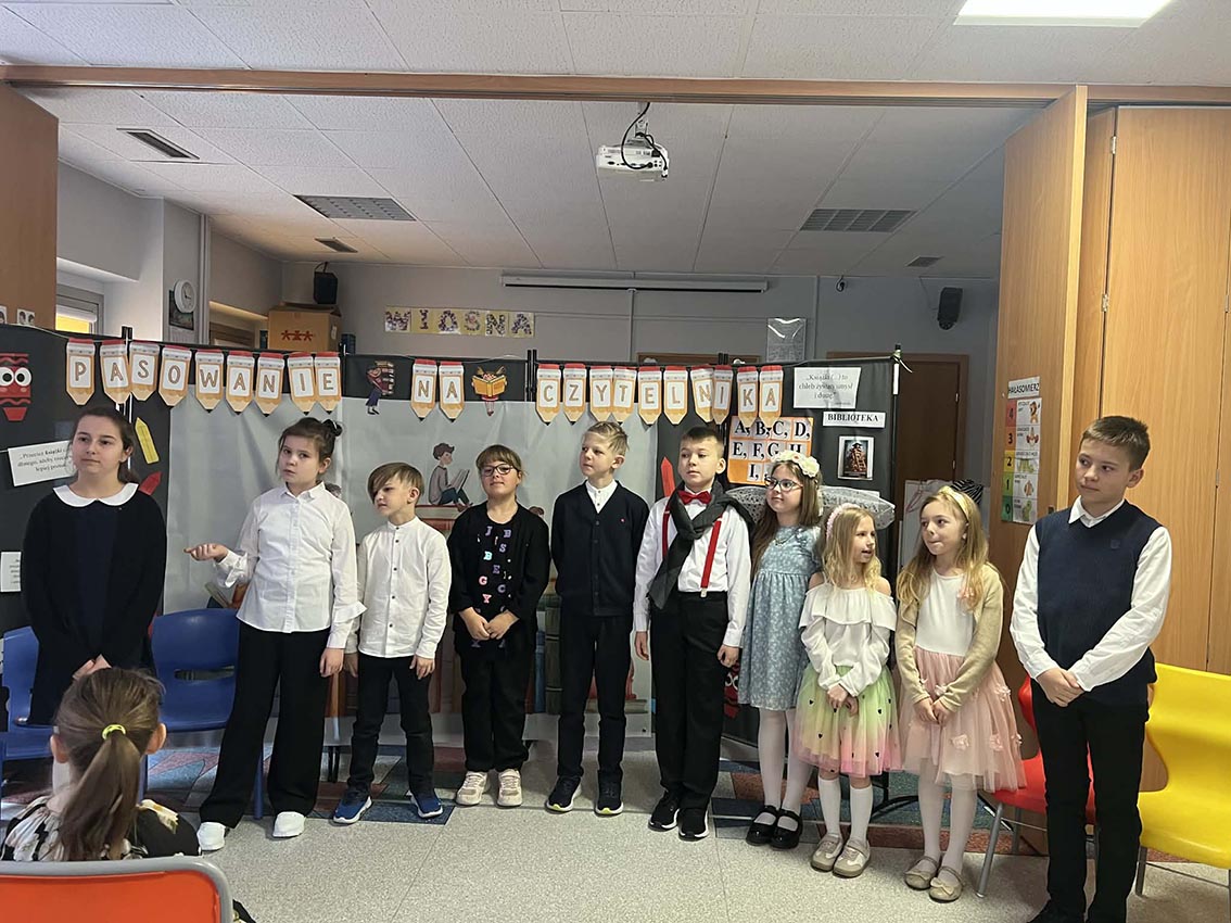Pierwszoklasiści zostali przywitani przez bibliotekarza w stołówce szkolnej, gdzie obejrzeli przedstawienie pt. „W świecie książki”, przygotowane przez szkolne koło teatralne. Po części artystycznej uczniowie złożyli uroczyste przyrzeczenie czytelnika, a następnie udali się do biblioteki, gdzie mogli wypożyczyć swoją pierwszą książkę. Na pamiątkę tego wydarzenia każdy uczeń otrzymał dyplom oraz specjalną wyprawkę czytelniczą od Instytutu Książki w ramach ogólnopolskiej kampanii „Mała książka – wielki człowiek”. W jej skład weszły książka „Wnuczka Antykwariusza” autorstwa Justyny Bednarek oraz broszura „Kochasz? Czytaj razem z dzieckiem” – poradnik dla rodziców i opiekunów podpowiadający, jak wspierać dziecko w nauce czytania i rozwijać jego miłość do książek. Był to niezwykle ważny dzień dla naszej biblioteki. Z radością witamy w gronie czytelników najmłodszych członków szkolnej społeczności i mamy nadzieję, że książki staną się ich wiernymi towarzyszami na długie lata.