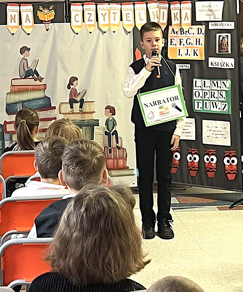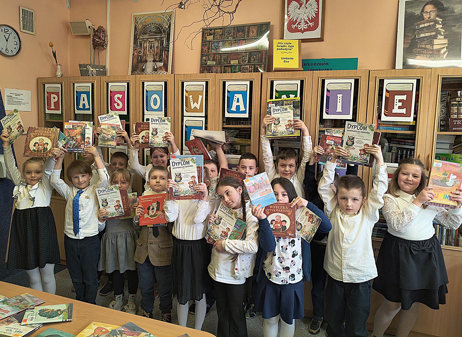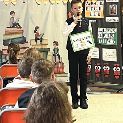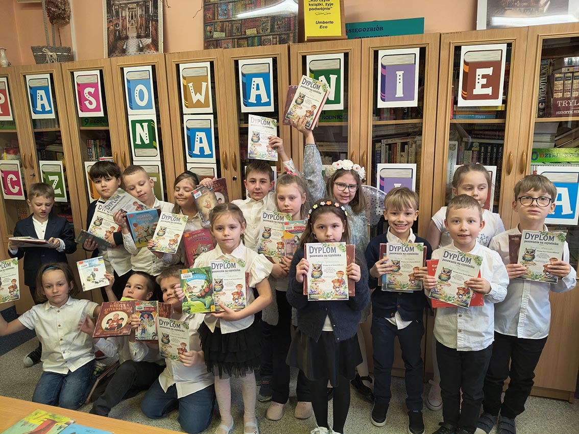 Pierwszoklasiści zostali przywitani przez bibliotekarza w stołówce szkolnej, gdzie obejrzeli przedstawienie pt. „W świecie książki”, przygotowane przez szkolne koło teatralne. Po części artystycznej uczniowie złożyli uroczyste przyrzeczenie czytelnika, a następnie udali się do biblioteki, gdzie mogli wypożyczyć swoją pierwszą książkę. Na pamiątkę tego wydarzenia każdy uczeń otrzymał dyplom oraz specjalną wyprawkę czytelniczą od Instytutu Książki w ramach ogólnopolskiej kampanii „Mała książka – wielki człowiek”. W jej skład weszły książka „Wnuczka Antykwariusza” autorstwa Justyny Bednarek oraz broszura „Kochasz? Czytaj razem z dzieckiem” – poradnik dla rodziców i opiekunów podpowiadający, jak wspierać dziecko w nauce czytania i rozwijać jego miłość do książek. Był to niezwykle ważny dzień dla naszej biblioteki. Z radością witamy w gronie czytelników najmłodszych członków szkolnej społeczności i mamy nadzieję, że książki staną się ich wiernymi towarzyszami na długie lata.