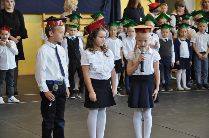 Ślubowanie i pasowanie na ucznia to bardzo ważna uroczystość w naszym szkolnym kalendarzu. To niezwykłe wydarzenie miało miejsce 12 października 2018r. Zanim pierwszaki zostały przyjęte do grona uczniów zaprezentowały swoje umiejętności w przygotowanym programie artystycznym. Wykazały się umiejętnością śpiewu, recytacji i tańca. W tym roku część artystyczna miała charakter patriotyczny. Było to kolejne działanie związane z obchodami 100 rocznicy odzyskania przez Polskę niepodległości.