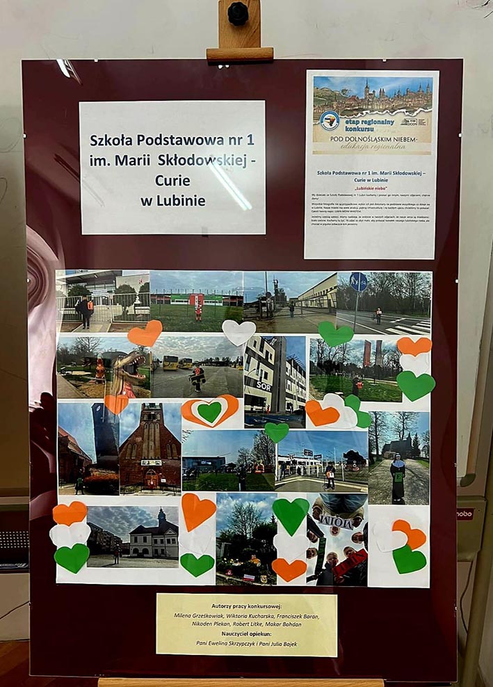 15 maja nasza szkoła wzięła udział w Ogólnopolskim Konkursie „Pod dolnośląskim niebem”, organizowanym przez Dolnośląski Ośrodek Doskonalenia Nauczycieli we Wrocławiu. Uczniowie klas 3b i 3c przygotowali wyjątkowy plakat składający się z 16 fotografii, które uchwyciły najpiękniejsze zakątki naszego miasta. Ich kreatywność i zaangażowanie zostały zaprezentowane przed jury konkursu. Serdecznie gratulujemy wszystkim uczestnikom!