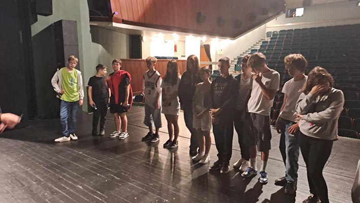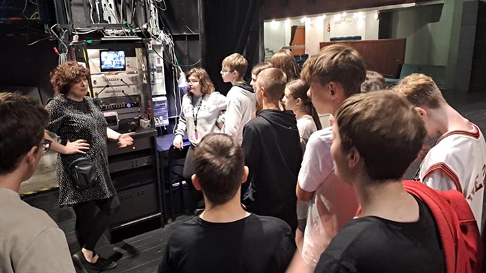 Podczas zajęć młodzież miała niepowtarzalną okazję zajrzeć za kulisy i poznać teatralne zakamarki niedostępne dla widzów – przestrzenie, z których aktorzy wychodzą na scenę, oraz techniczne zaplecze obsługiwane przez operatorów. Na zakończenie warsztatów uczniowie – choć z lekką tremą – odważyli się wystąpić na prawdziwej scenie. To było wyjątkowe spotkanie ze sztuką, które z pewnością na długo pozostanie w ich pamięci!