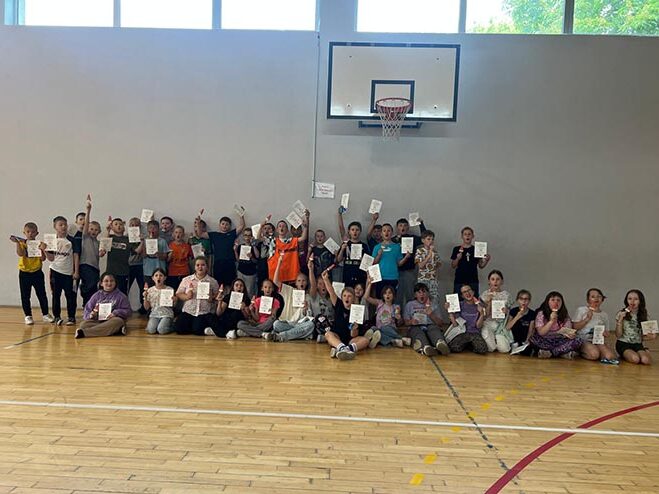 9 czerwca uczniowie klas trzecich wzięli udział w wyjątkowych zawodach pod hasłem „Sportowe pożegnanie klasy trzeciej”. Była to świetna okazja, by sprawdzić swoje umiejętności, poczuć ducha rywalizacji i wspólnie przeżyć radosne chwile na sportowo. Na uczestników czekały pamiątkowe dyplomy oraz słodka niespodzianka, a uśmiechy na twarzach trzecioklasistów mówiły wszystko – to był dzień pełen emocji i dobrej zabawy!