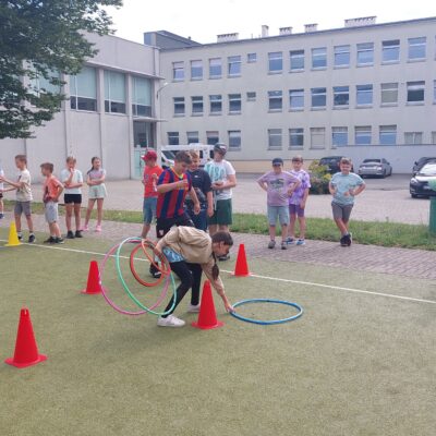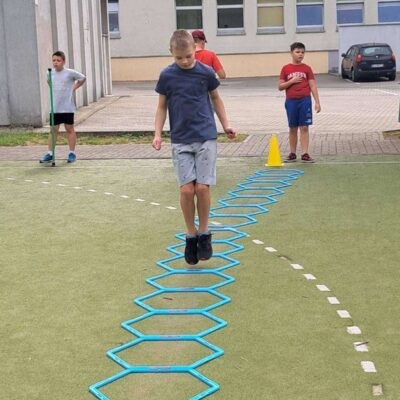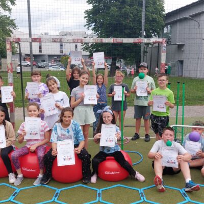17 czerwca uczniowie klas trzecich mieli okazję sprawdzić swoje umiejętności sportowe biorąc udział w konkurencjach pod hasłem „Sportowe pożegnanie klasy trzeciej”. Na boisku szkolnym zostały przygotowane stacje sportowe, które uczniowie musieli zaliczyć. Na każdej z nich należało wykonać inne zadanie: slalom z piłką, skoki przez płotki, bieg, kozłowanie piłki, rzuty do celu, skoki na piłkach. Po zakończonych zmaganiach sportowych był także czas na odpoczynek i mini piknik na świeżym powietrzu. Uczniowie otrzymali pamiątkowe dyplomy i drobne upominki.