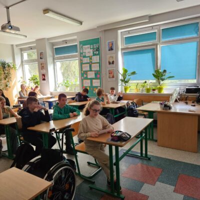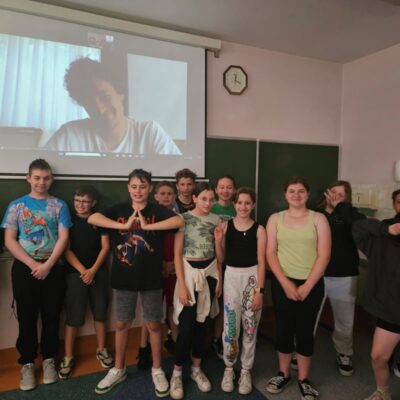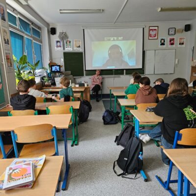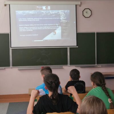 W kwietniu i maju odbyły się dwa spotkania online z native speakerami języka angielskiego w ramach współpracy ze stowarzyszeniem „Sophie H. – Meet the World – International Club”. W spotkaniach wzięły udział klasy 5a, 5b i 7b. Uczniowie spotkali się wirtualnie z dwoma nauczycielami pochodzącymi z Birmingham w Wielkiej Brytanii i South Lake Tahoe w Stanach Zjednoczonych. Lektorzy przygotowali ciekawe prezentacje na temat krajów, z których pochodzą. Opowiadali o swoim życiu, a w szczególności o dzieciństwie, rodzinach, szkole, pracy, hobby i zainteresowaniach. Była to okazja do przedyskutowania różnic i podobieństw kulturowych między naszymi krajami. Uczniowie mogli sprawdzić swoją praktyczną znajomość języka angielskiego w sytuacjach dnia codziennego poprzez zadawanie pytań i uczestniczenie w dyskusji.