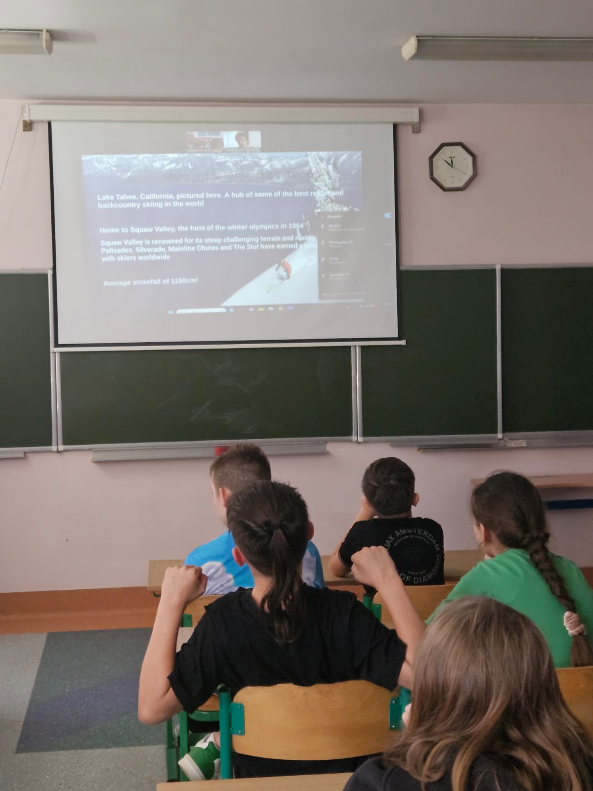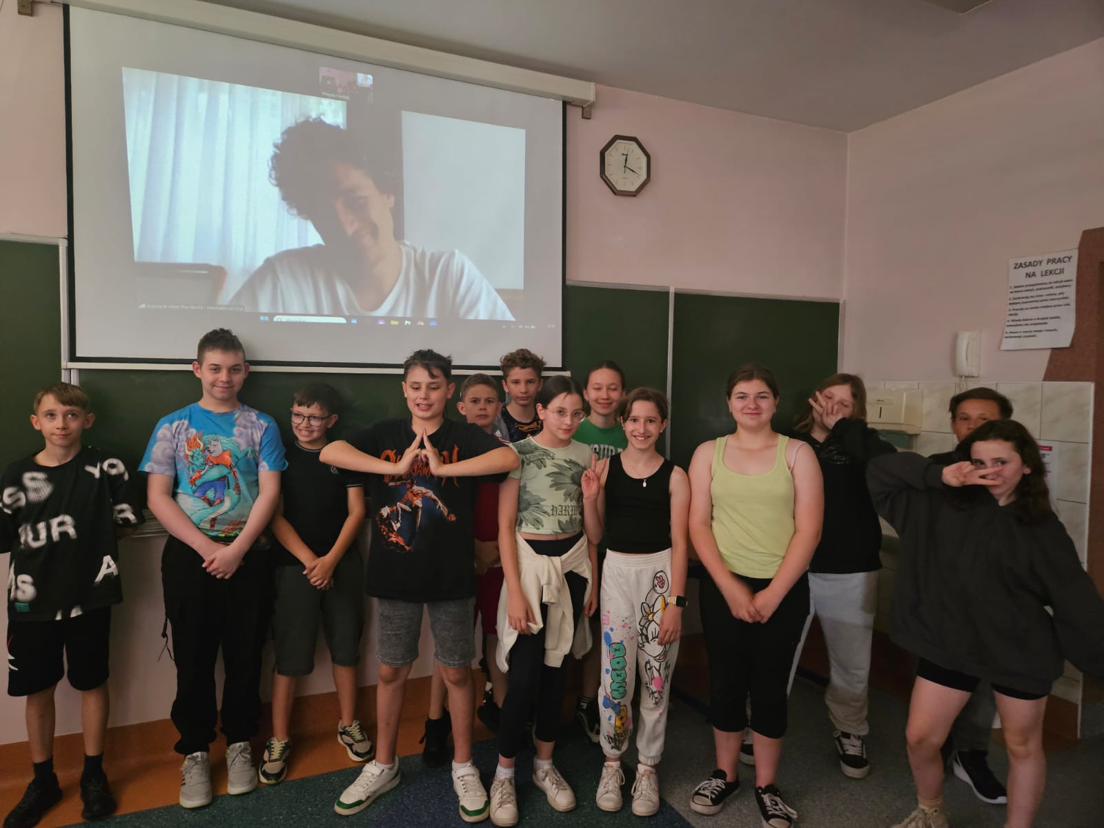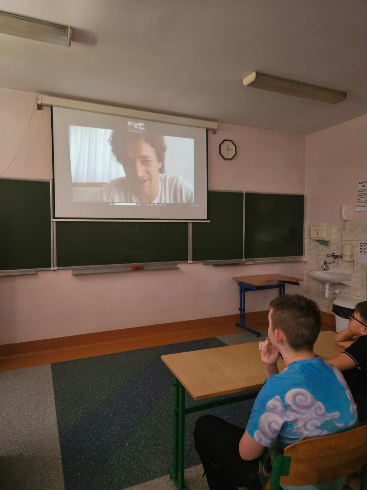 W kwietniu i maju odbyły się dwa spotkania online z native speakerami języka angielskiego w ramach współpracy ze stowarzyszeniem „Sophie H. – Meet the World – International Club”. W spotkaniach wzięły udział klasy 5a, 5b i 7b. Uczniowie spotkali się wirtualnie z dwoma nauczycielami pochodzącymi z Birmingham w Wielkiej Brytanii i South Lake Tahoe w Stanach Zjednoczonych. Lektorzy przygotowali ciekawe prezentacje na temat krajów, z których pochodzą. Opowiadali o swoim życiu, a w szczególności o dzieciństwie, rodzinach, szkole, pracy, hobby i zainteresowaniach. Była to okazja do przedyskutowania różnic i podobieństw kulturowych między naszymi krajami. Uczniowie mogli sprawdzić swoją praktyczną znajomość języka angielskiego w sytuacjach dnia codziennego poprzez zadawanie pytań i uczestniczenie w dyskusji.