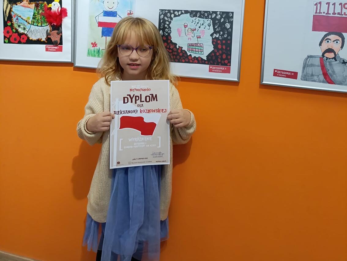 Z radością informujemy, że Aleksandra Kozłowska z klasy 1a zdobyła wyróżnienie w konkursie plastycznym organizowanym przez Muzeum Historyczne w Lubinie, pięknie ukazując Święto Niepodległości. Jesteśmy dumni z talentu i zaangażowania naszej uczennicy, serdecznie gratulujemy i życzymy dalszych sukcesów!
