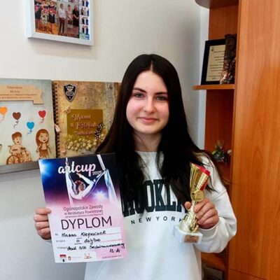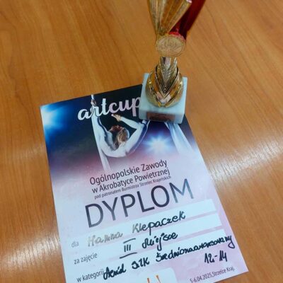 Z ogromną dumą informujemy, że Hanna Klepaczek, uczennica naszej szkoły, zajęła III miejsce w Ogólnopolskich Zawodach ArtCup w Akrobatyce Powietrznej, które odbyły się pod patronatem Burmistrza Strzelec Krajeńskich. Hania startowała w kategorii aerial silk – widowiskowej dyscyplinie łączącej taniec, siłę i grację w powietrzu, na długich, zwisających z sufitu szarfach. To wyjątkowe osiągnięcie jest efektem ciężkiej pracy, pasji i determinacji, jakie Hanna wkłada w treningi. Gratulujemy i życzymy dalszych sukcesów!