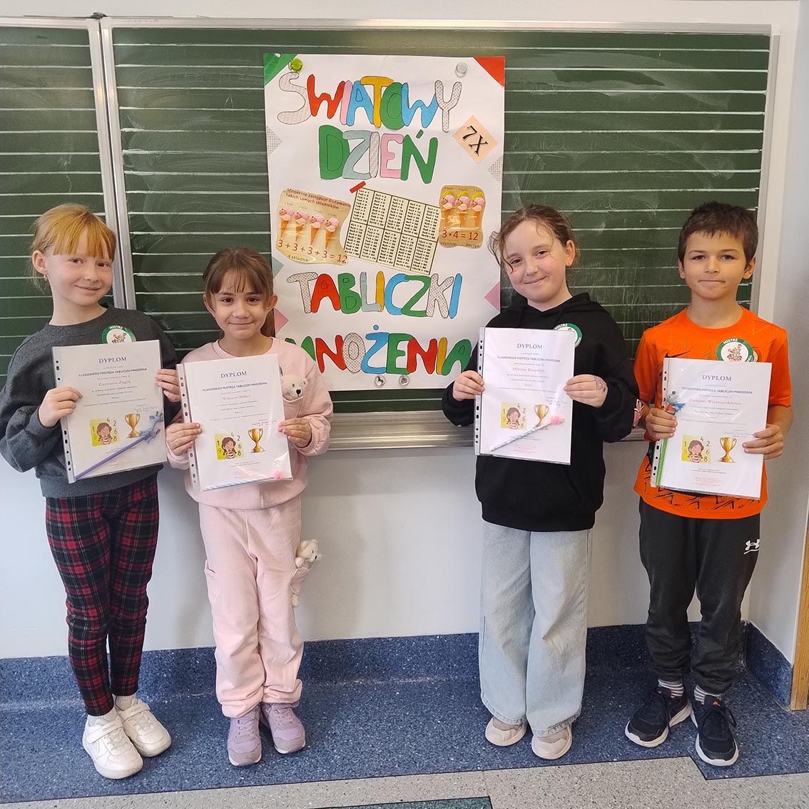 W piątek w naszej szkole obchodziliśmy Światowy Dzień Tabliczki Mnożenia. Uczniowie klas trzecich wzięli udział w pełnej emocji rywalizacji, której celem było sprawdzenie znajomości tabliczki mnożenia. Trzecioklasiści udowodnili, że liczenie może być świetną zabawą! W każdej klasie wyłoniono Klasowego Mistrza Tabliczki Mnożenia, który najszybciej i bezbłędnie poradził sobie z zadaniem. I tak Klasowymi Mistrzami Tabliczki Mnożenia w poszczególnych klasach zostali: