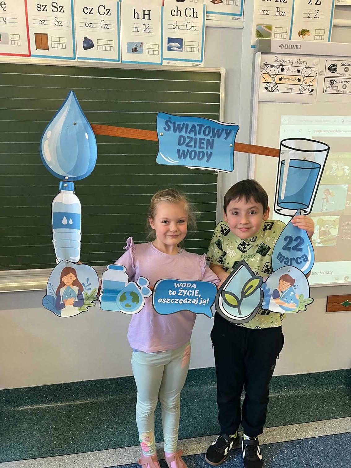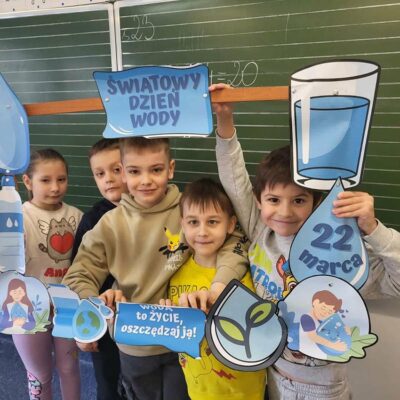Nasza szkoła włączyła się w obchody Światowego Dnia Wody z Polską Akcją Humanitarną (PAH) oraz Tygodnia Zdrowia. Z tej okazji uczniowie klas 1–3 wzięli udział w konkursie plastycznym „Woda – skarb naszej planety”.