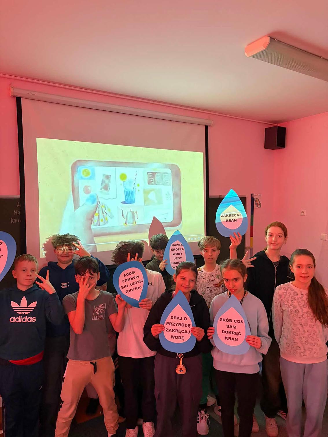 W ramach akcji we wszystkich klasach wyświetlono filmy edukacyjne przygotowane przez PAH. Uczniowie dowiedzieli się, jak ważna jest woda dla naszego zdrowia, oraz poznali proste sposoby na jej codzienne oszczędzanie.