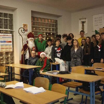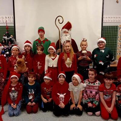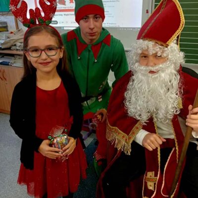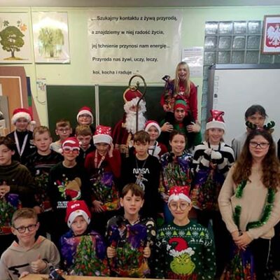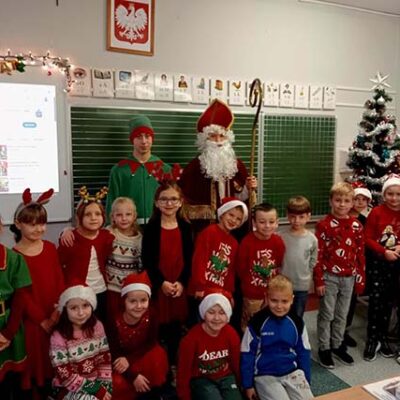W miniony piątek naszą szkołę wypełniła prawdziwa magia świąt, przybył do nas Święty Mikołaj! Z workiem pełnym prezentów i uśmiechem od ucha do ucha spotkał się z uczniami, którzy przywitali go bardzo serdecznie. Mikołaj odwiedził każdą klasę, rozmawiał z dziećmi i sprawdzał, kto przez cały rok zasłużył na upominek. Na szczęście okazało się, że w naszej szkole grzecznych dzieci nie brakuje!