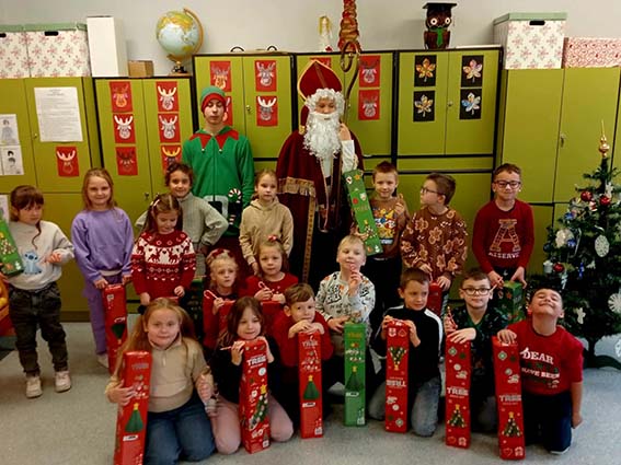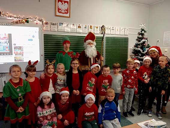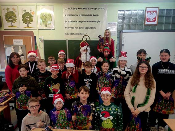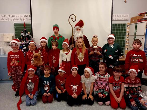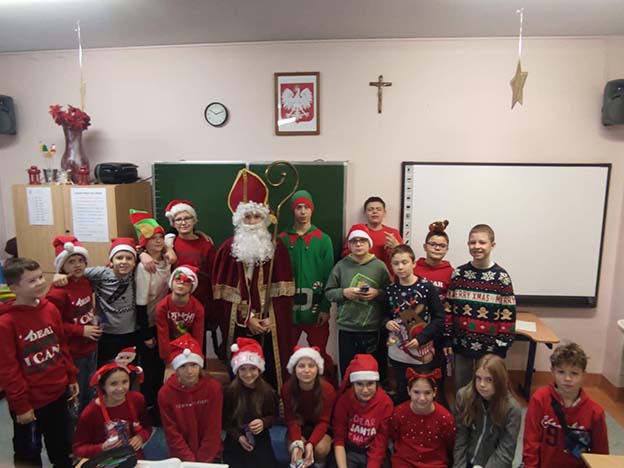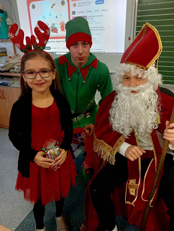 W miniony piątek naszą szkołę wypełniła prawdziwa magia świąt, przybył do nas Święty Mikołaj! Z workiem pełnym prezentów i uśmiechem od ucha do ucha spotkał się z uczniami, którzy przywitali go bardzo serdecznie. Mikołaj odwiedził każdą klasę, rozmawiał z dziećmi i sprawdzał, kto przez cały rok zasłużył na upominek. Na szczęście okazało się, że w naszej szkole grzecznych dzieci nie brakuje!