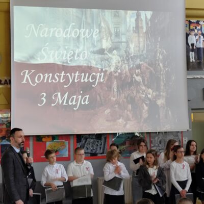 W naszej szkole odbyła się akademia upamiętniająca uchwalenie Konstytucji 3 Maja – jednego z najważniejszych wydarzeń w historii Polski. Uczniowie przypomnieli, czym jest konstytucja i w jakich okolicznościach powstała pierwsza w Europie i druga na świecie ustawa zasadnicza. W atmosferze refleksji i dumy rozbrzmiały także pieśni patriotyczne, które podkreśliły znaczenie wolności, jedności i odpowiedzialności obywatelskiej.