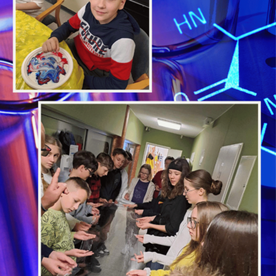 17 kwietnia uczniowie klasy 6a wzięli udział w warsztatach chemicznych „Magia wody” w CK Muza w Lubinie. Pod czujnym okiem instruktora odkrywali prawa chemii, wykonując proste doświadczenia i omawiając swoje obserwacje. Uczniowie poznali właściwości tej niezwykle ważnej substancji, która stanowi 70% powierzchni naszej planety, 70% masy ciała i 90% masy mózgu. Nauka przez eksperyment to doskonałe połączenie wiedzy teoretycznej z praktyką.