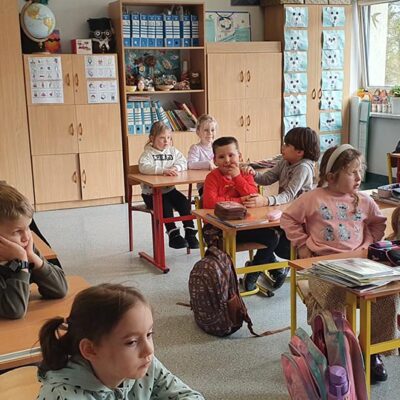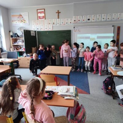 Podczas wizyty przedszkolaki zwiedziły budynek szkoły, zajrzały do sal lekcyjnych oraz uczestniczyły w przygotowanych dla nich zajęciach edukacyjnych. Szczególnym momentem było pierwsze w życiu zajęcie miejsca w szkolnej ławce, dla wielu dzieci było to niezwykle emocjonujące doświadczenie. Podsumowaniem spotkania była wspólna zabawa na sali gimnastycznej, która pozwoliła wszystkim uczestnikom aktywnie i radośnie zakończyć ten wyjątkowy dzień. Cieszymy się, że mogliśmy gościć przyszłych uczniów naszej szkoły i mamy nadzieję, że wizyta pozostawiła w ich pamięci same miłe wspomnienia.