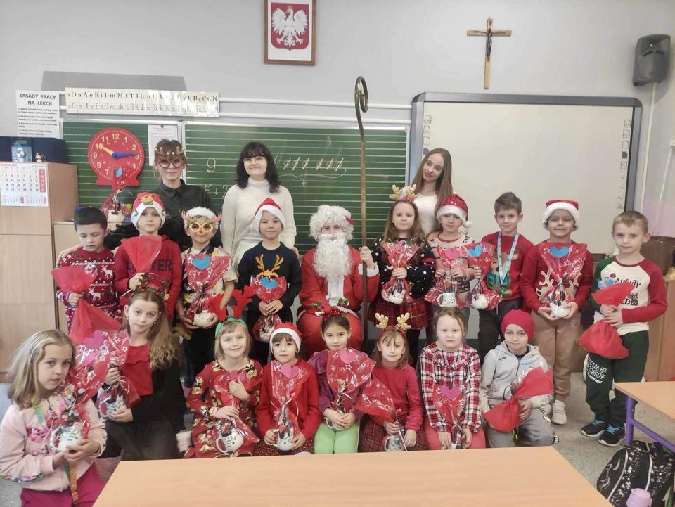 6 grudnia powitaliśmy w naszej szkole z wielką radością Świętego Mikołaja oraz jego piękne pomocnice. Goście odwiedzili każdą klasę i obdarowali wszystkich uczniów słodkościami. Dziękujemy za radosną wizytę, a Radzie Rodziców za wsparcie finansowe.