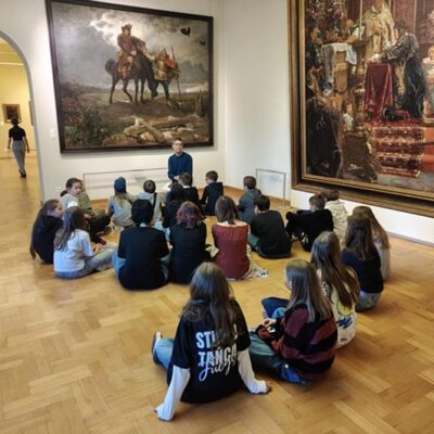 27 maja klasy 5b, 8c oraz uczestnicy naszej pracowni plastycznej wyruszyli na pełną wrażeń wycieczkę do Wrocławia. Odwiedzili Muzeum Narodowe, gdzie oprócz podziwiania wyjątkowych dzieł sztuki, uczniowie wzięli udział w ciekawych lekcjach muzealnych. Udali się również na spacer po Ostrowie Tumskim – historycznym sercu miasta – oraz po Ogrodzie Botanicznym, który zachwycił różnorodnością roślin i urokliwymi alejkami. To była wyjątkowa wyprawa pełna inspiracji, wiedzy i wspólnych przeżyć!