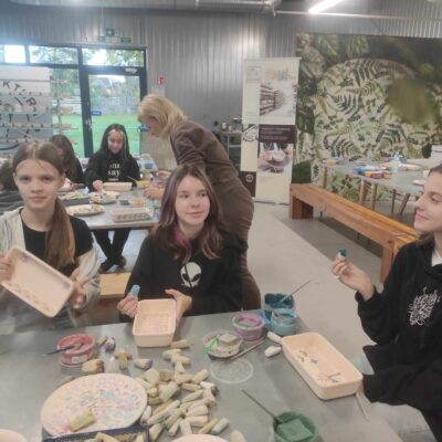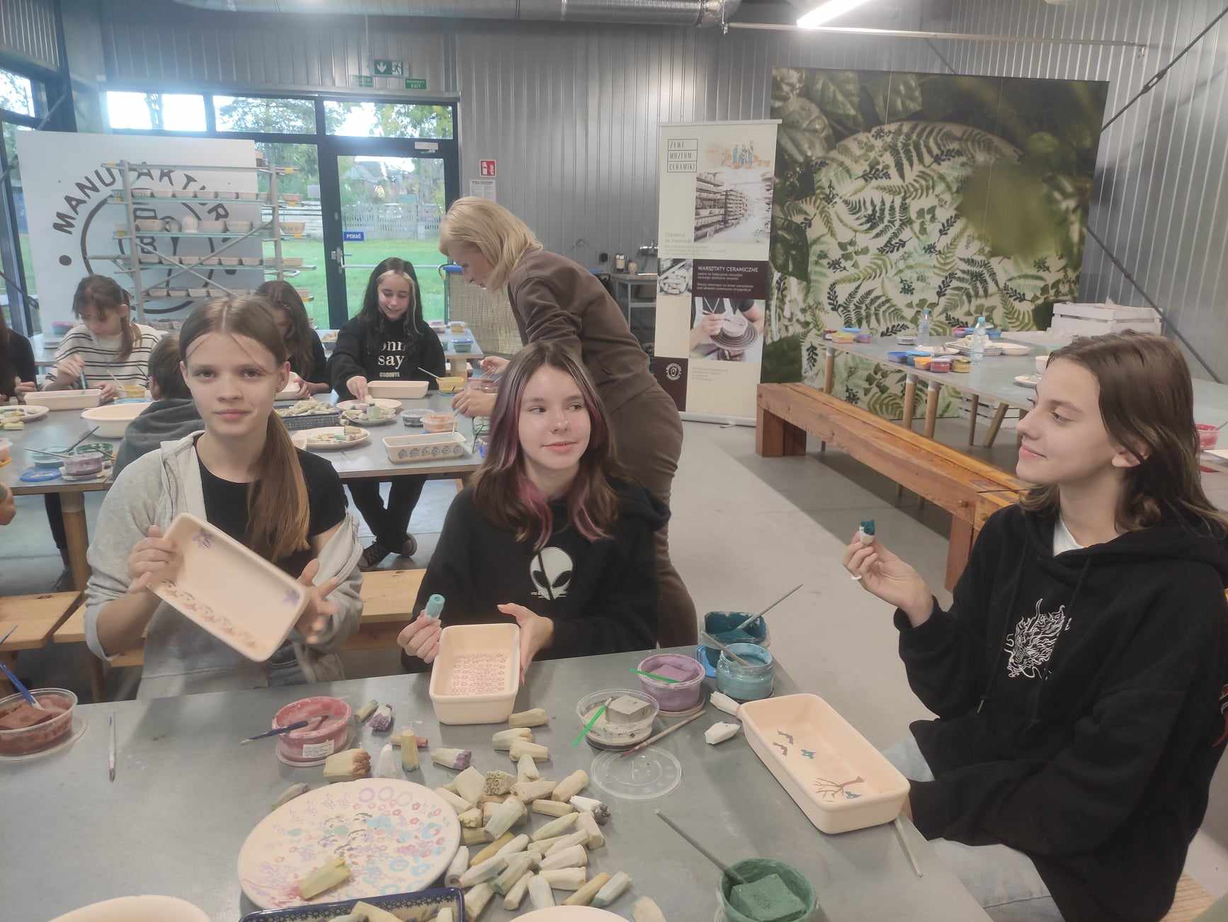 Mijający tydzień obfitował w wycieczki. Jako pierwsi wyruszyli uczniowie klas 4a, 5a i 6d. Najpierw udali się na Zamek Grodziec, wybudowany na bazaltowym, powulkanicznym wzgórzu o wysokości 389 m n.p.m. Zwiedzili sale zamkowe, wieżę, mury obronne, baszty i podziwiali przepiękną panoramę Pogórza Kaczawskiego. Kolejnym etapem wycieczki była wizyta w Bolesławcu – mieście ceramiki. Uczniowie zwiedzili Żywe Muzeum Ceramiki oraz uczestniczyli w warsztatach, na których ozdabiali naczynia tradycyjną, bolesławiecką metodą stempelkową.