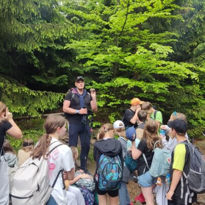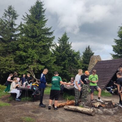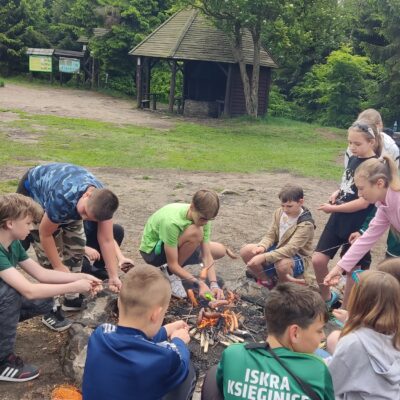 29 maja klasy 4b, 7c i 8b uczestniczyły w wycieczce na Wielką Sowę. Uczniowie przeżyli wspaniałą górską przygodę, w trakcie której mieli okazję poznać rejon tajemniczych Gór Sowich. W trakcie wędrówki przewodnik opowiadał wiele ciekawych historii związanych z regionem oraz jego budową geologiczną. Dzieci miały możliwość nauki poszanowania przyrody i zachowania w terenie górskim. Po dotarciu na szczyt, chłopcy z klasy 4b i 7c z olbrzymim zapałem przygotowali ognisko, na którym piekliśmy kiełbaski i pianki, a przewodnik opowiedział dzieciom o górskim ekwipunku: niezbędnej zawartości plecaka i apteczki. Kiedy każdy się posilił i odpoczął, ruszyliśmy w dalszą wędrówkę i dotarliśmy na szczyt Małej Sowy. Następnie, z uśmiechami na twarzach i w wyśmienitym nastroju, przeszliśmy piękną trasą widokową. Podziwiając sudeckie szczyty z daleka, poszerzyliśmy umiejętność obserwacji i orientacji w terenie.