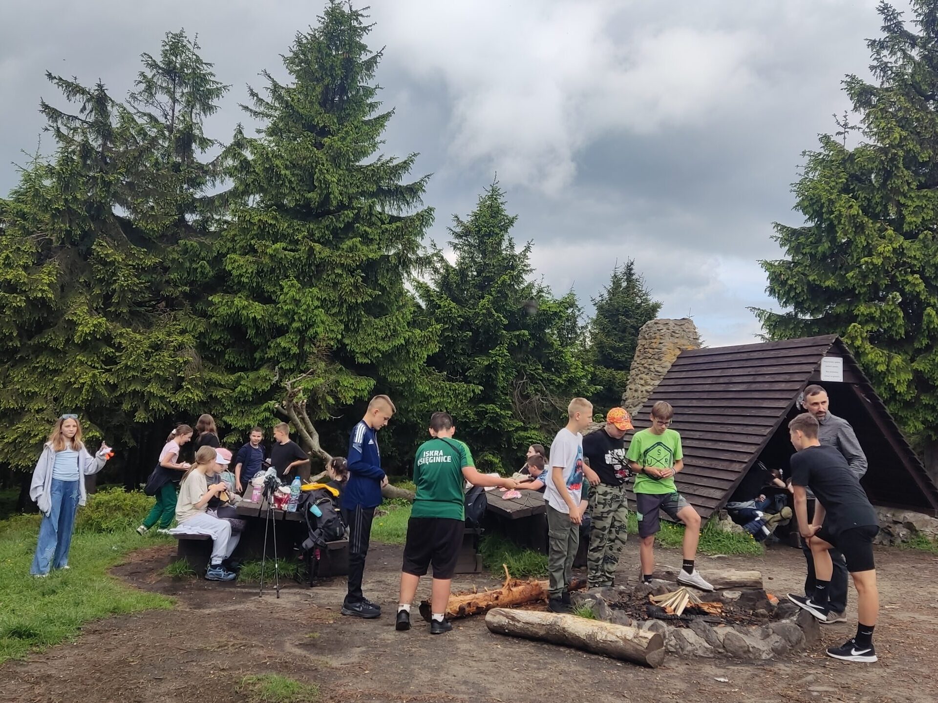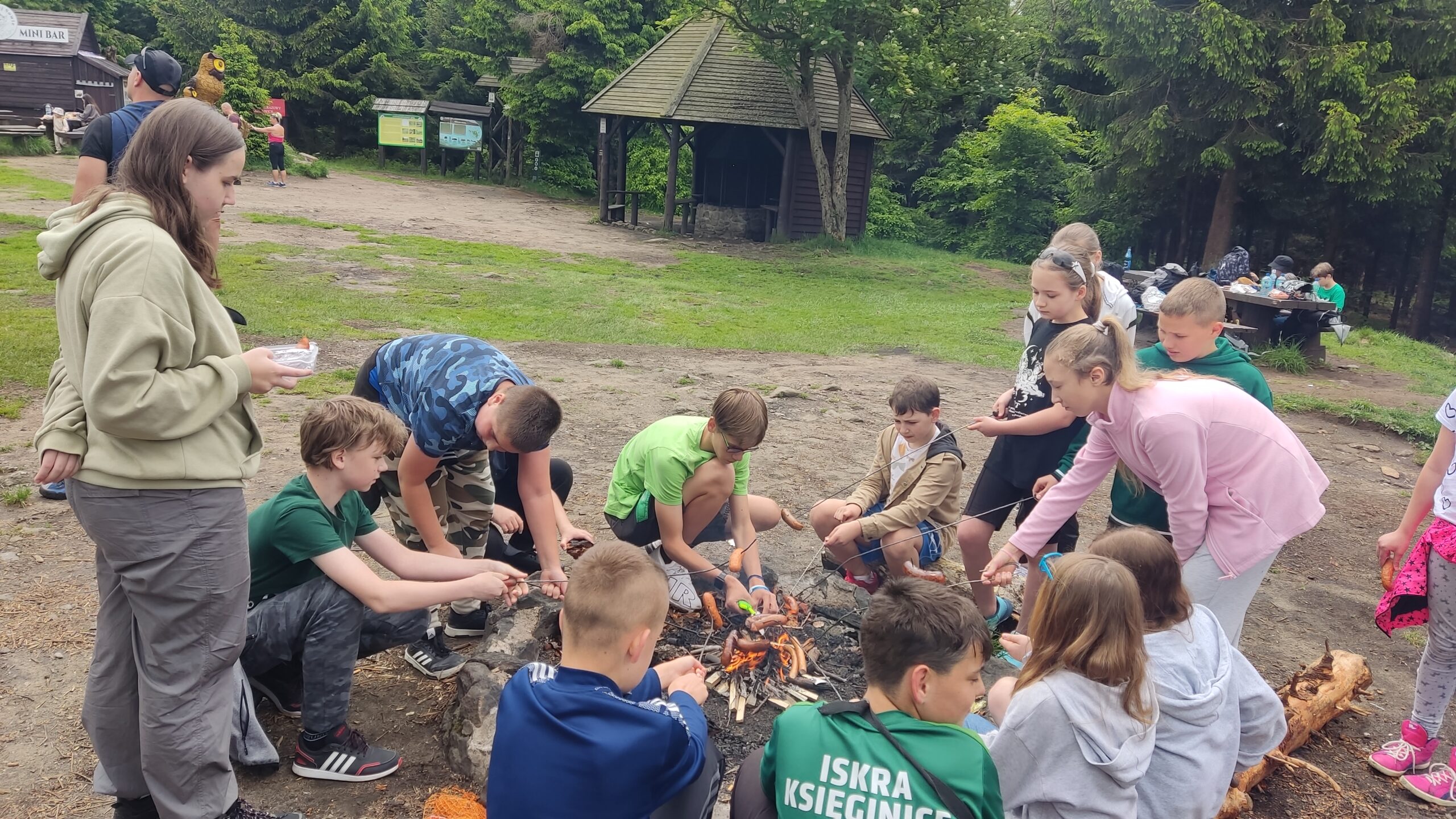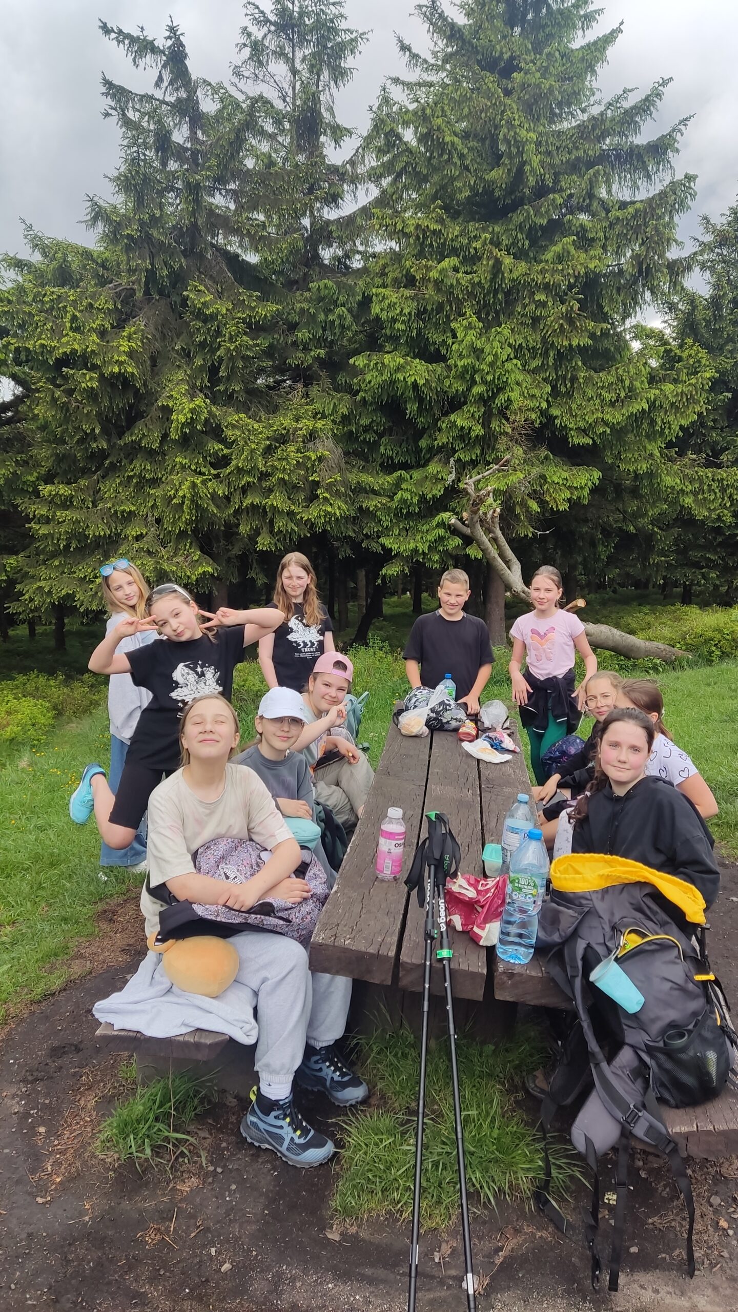 29 maja klasy 4b, 7c i 8b uczestniczyły w wycieczce na Wielką Sowę. Uczniowie przeżyli wspaniałą górską przygodę, w trakcie której mieli okazję poznać rejon tajemniczych Gór Sowich. W trakcie wędrówki przewodnik opowiadał wiele ciekawych historii związanych z regionem oraz jego budową geologiczną. Dzieci miały możliwość nauki poszanowania przyrody i zachowania w terenie górskim. Po dotarciu na szczyt, chłopcy z klasy 4b i 7c z olbrzymim zapałem przygotowali ognisko, na którym piekliśmy kiełbaski i pianki, a przewodnik opowiedział dzieciom o górskim ekwipunku: niezbędnej zawartości plecaka i apteczki. Kiedy każdy się posilił i odpoczął, ruszyliśmy w dalszą wędrówkę i dotarliśmy na szczyt Małej Sowy. Następnie, z uśmiechami na twarzach i w wyśmienitym nastroju, przeszliśmy piękną trasą widokową. Podziwiając sudeckie szczyty z daleka, poszerzyliśmy umiejętność obserwacji i orientacji w terenie.
