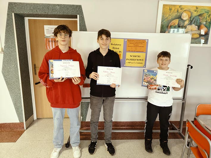 Nasza szkoła świętowała Dzień Liczby Pi w wyjątkowy sposób. Uczniowie wzięli udział w emocjonującym „Wyścigu pamięciowym”, w którym zadaniem było zapamiętanie jak największej liczby cyfr rozwinięcia dziesiętnego liczby π. Wszyscy uczestnicy wykazali się niesamowitą pamięcią i determinacją! Najlepszy wynik wyniósł aż 40 cyfr!