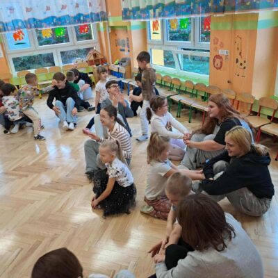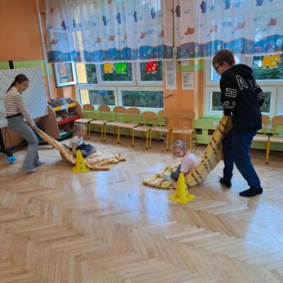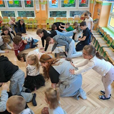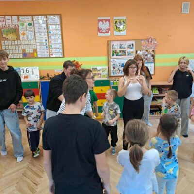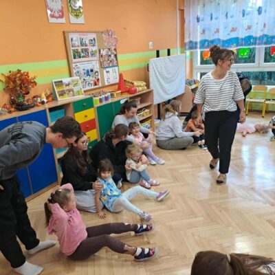 16 października uczniowie klasy 8c odwiedzili Przedszkole Miejskie nr 13 w Lubinie, gdzie wzięli udział w warsztatach w ramach programu „Czas na zabawę – zabawa łączy pokolenia”.