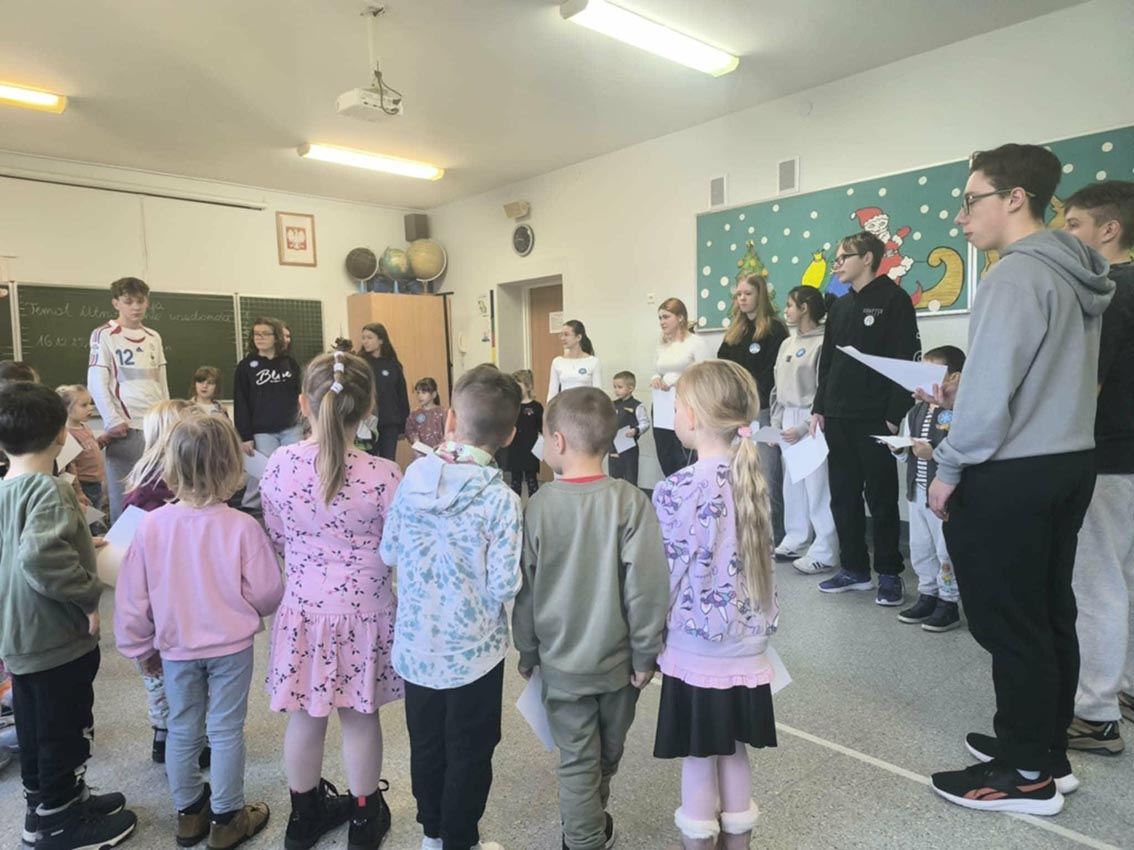 11 grudnia w naszej szkole odbyło się spotkanie uczniów klasy 8c z przedszkolakami z PM nr 13, w ramach programu ” Czas na zabawę- zabawa łączy pokolenia”. Celem spotkania było budowanie więzi międzypokoleniowych, rozwijanie umiejętności społecznych, kształtowanie empatii, odpowiedzialności i współpracy. Dla przedszkolaków to okazja do poznania środowiska szkolnego, natomiast dla uczniów klasy ósmej cenna lekcja odpowiedzialności i współdziałania.