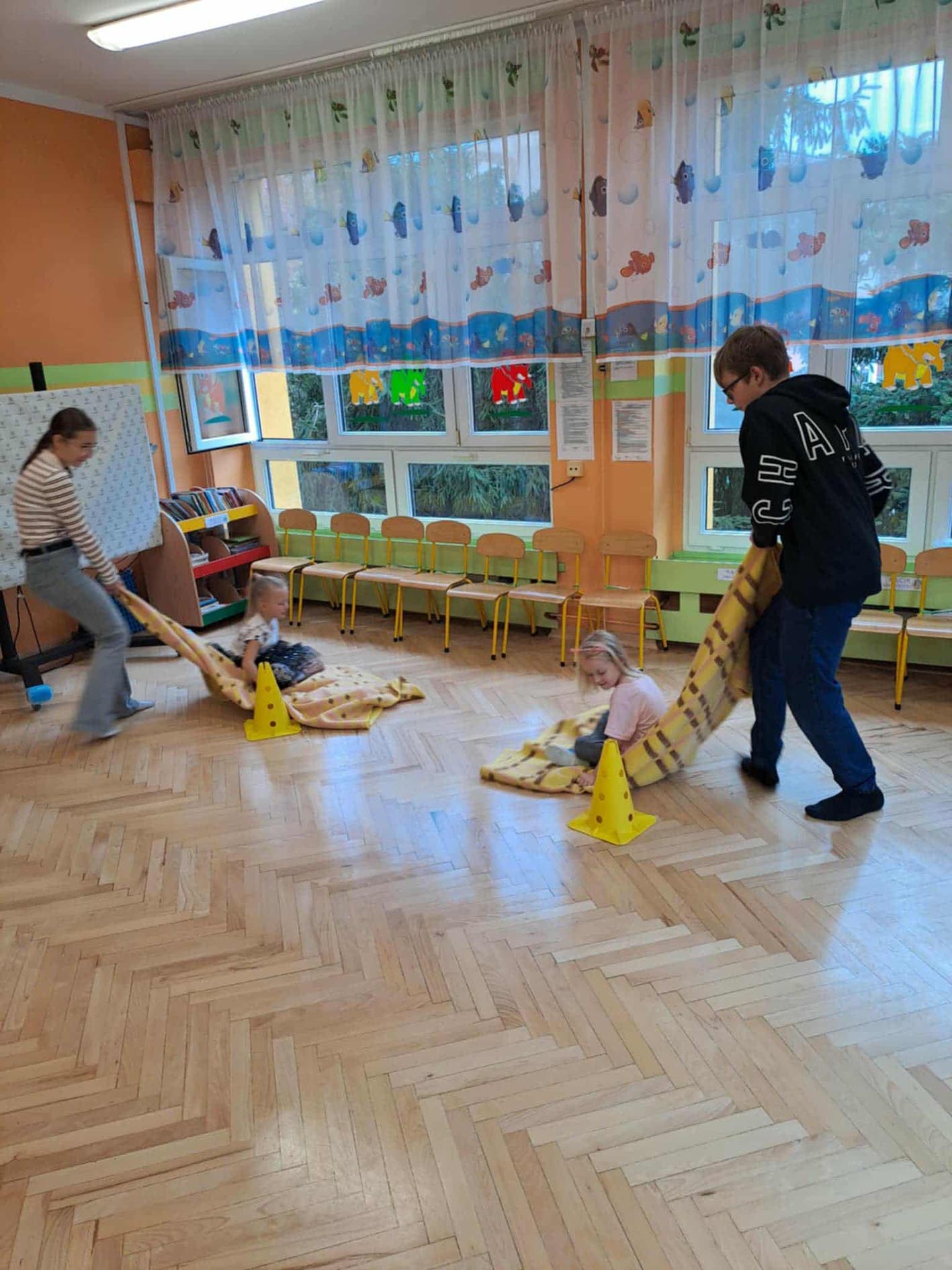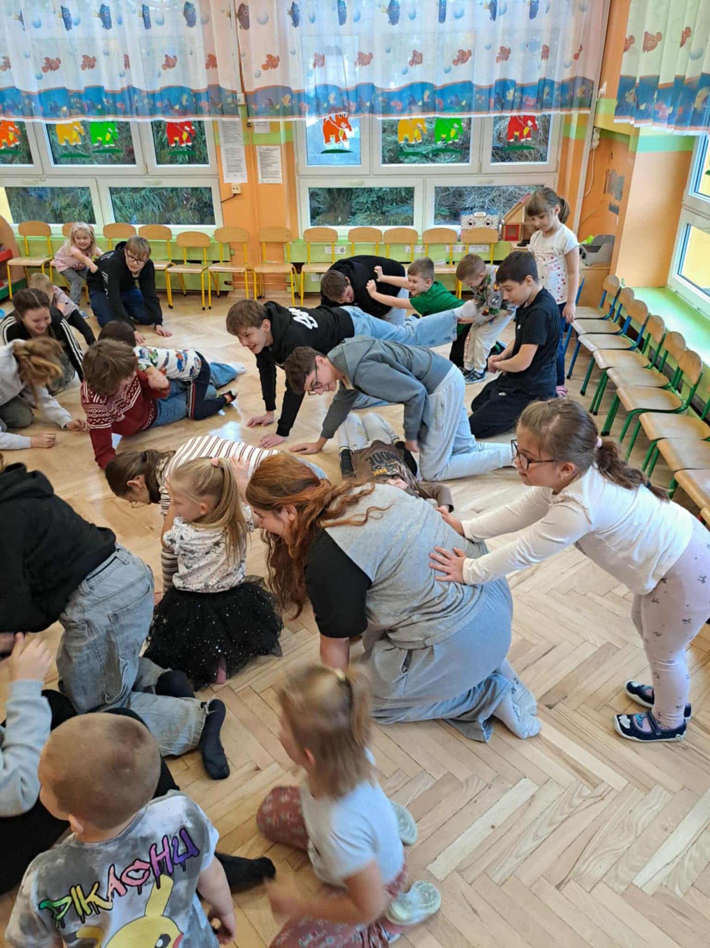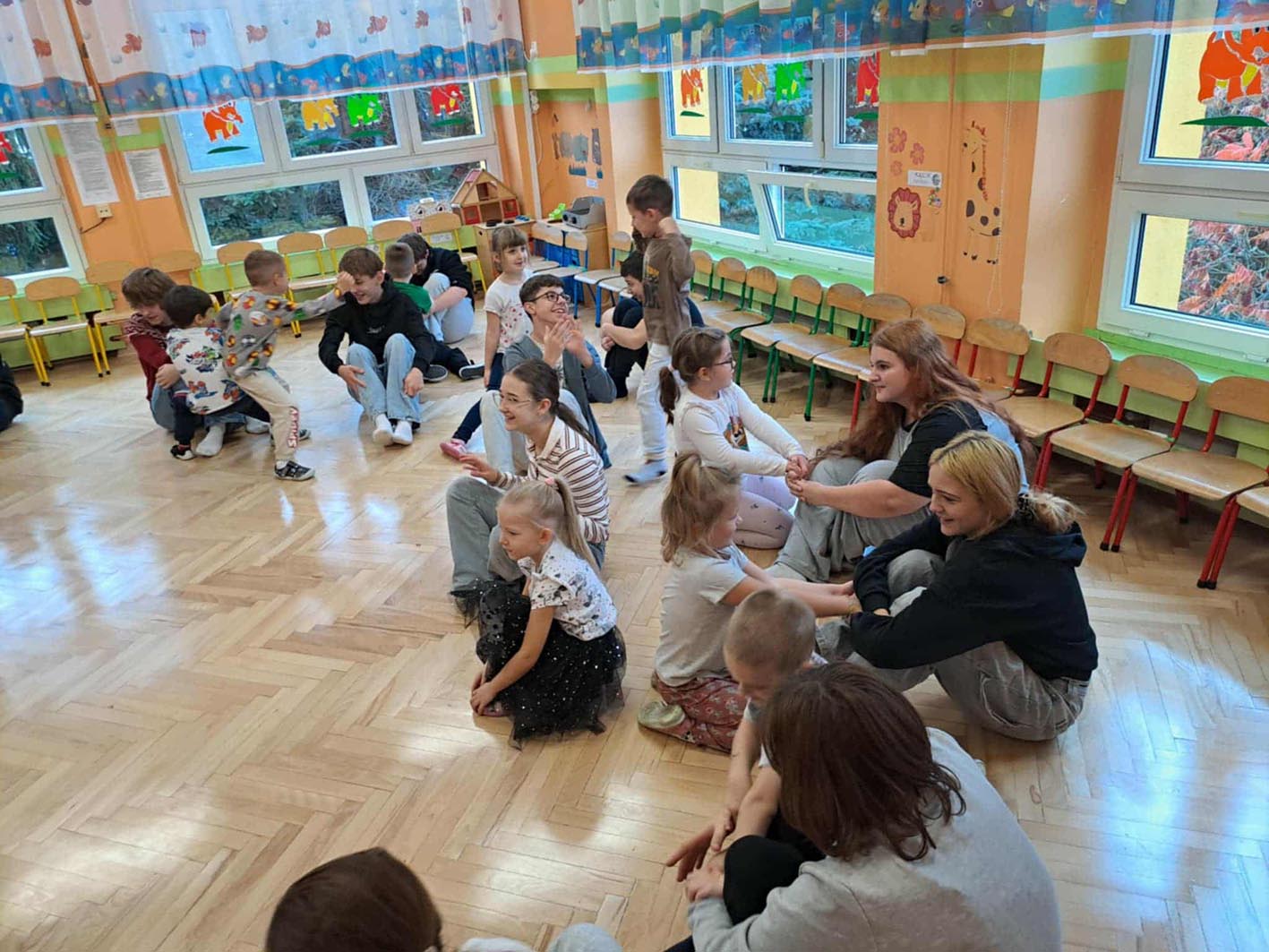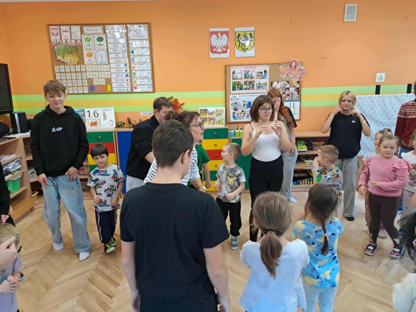 16 października uczniowie klasy 8c odwiedzili Przedszkole Miejskie nr 13 w Lubinie, gdzie wzięli udział w warsztatach w ramach programu „Czas na zabawę – zabawa łączy pokolenia”.